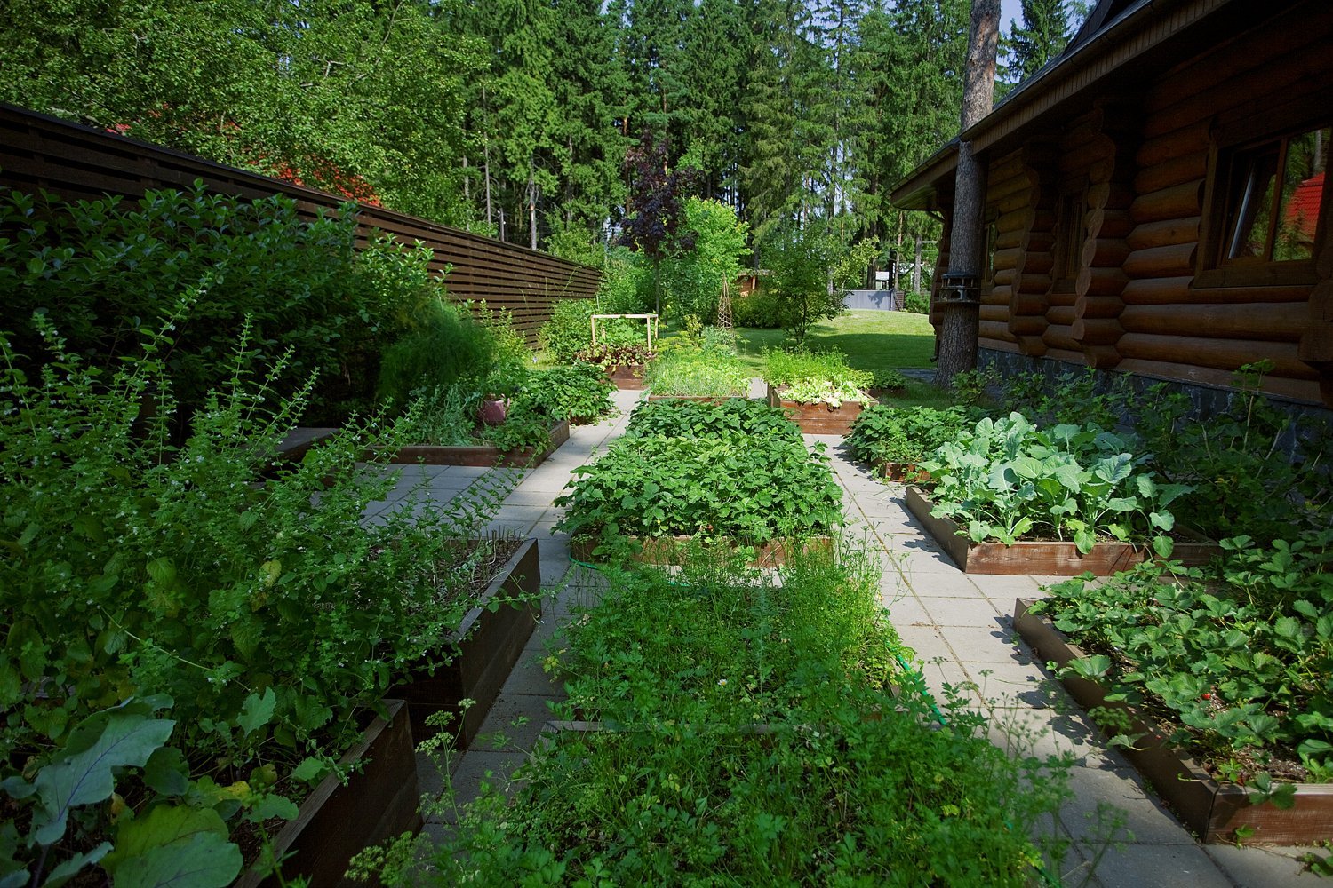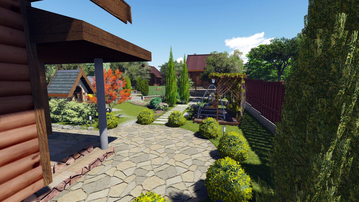 Bosque: solo se utilizan materiales naturales, árboles forestales, piedras cubiertas de musgo. Los edificios de madera, las camas se hacen discretas. La tenencia de la tierra se asemeja a una parcela de un bosque real, con ligeros acentos: la reurbanización es la más mínima.