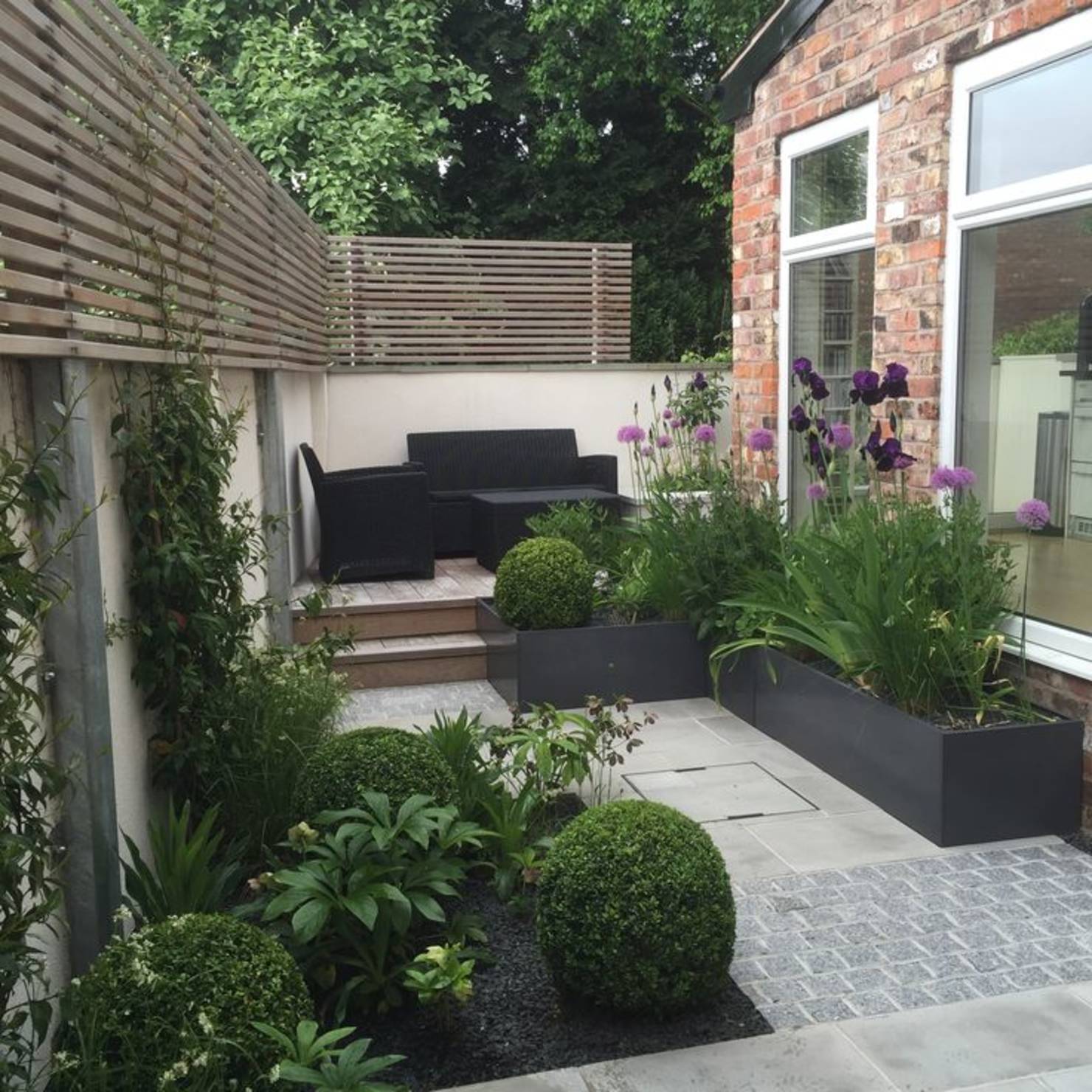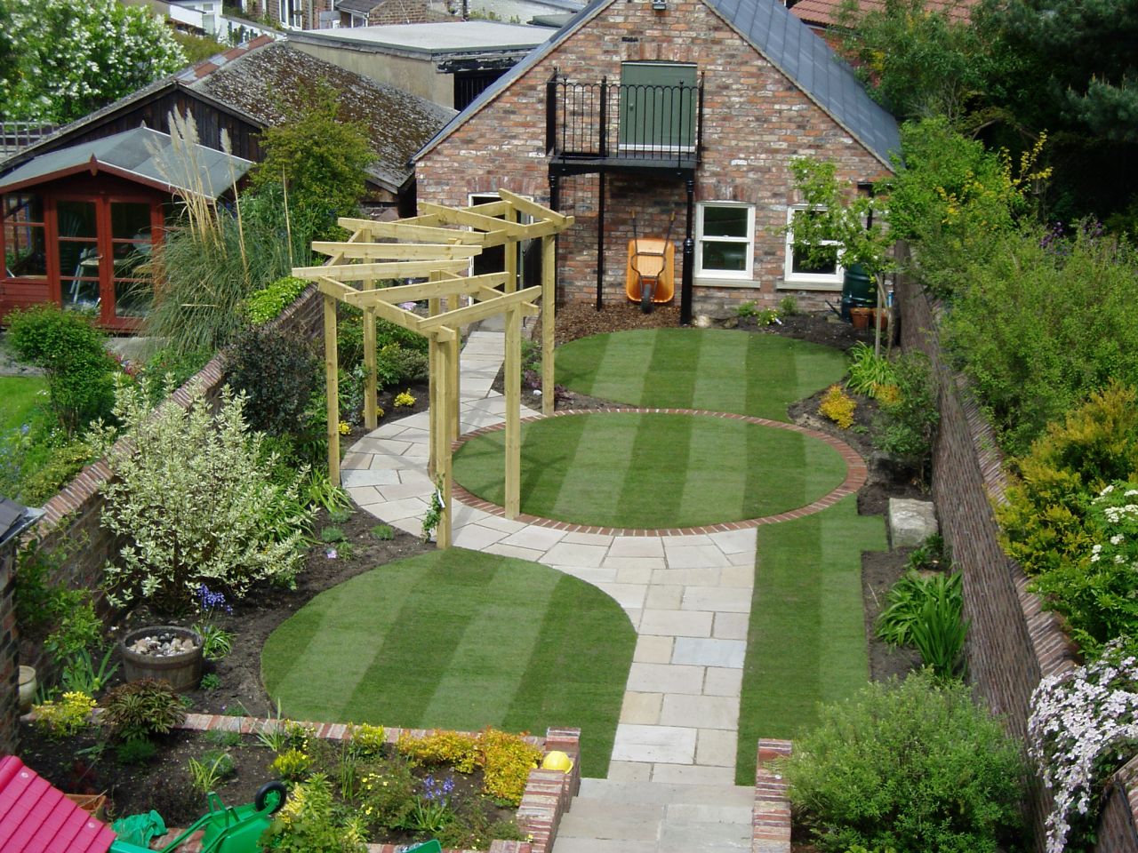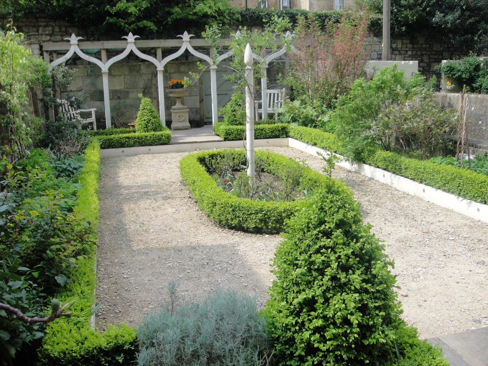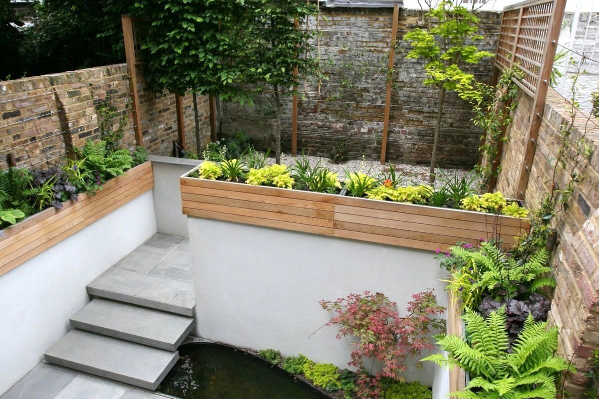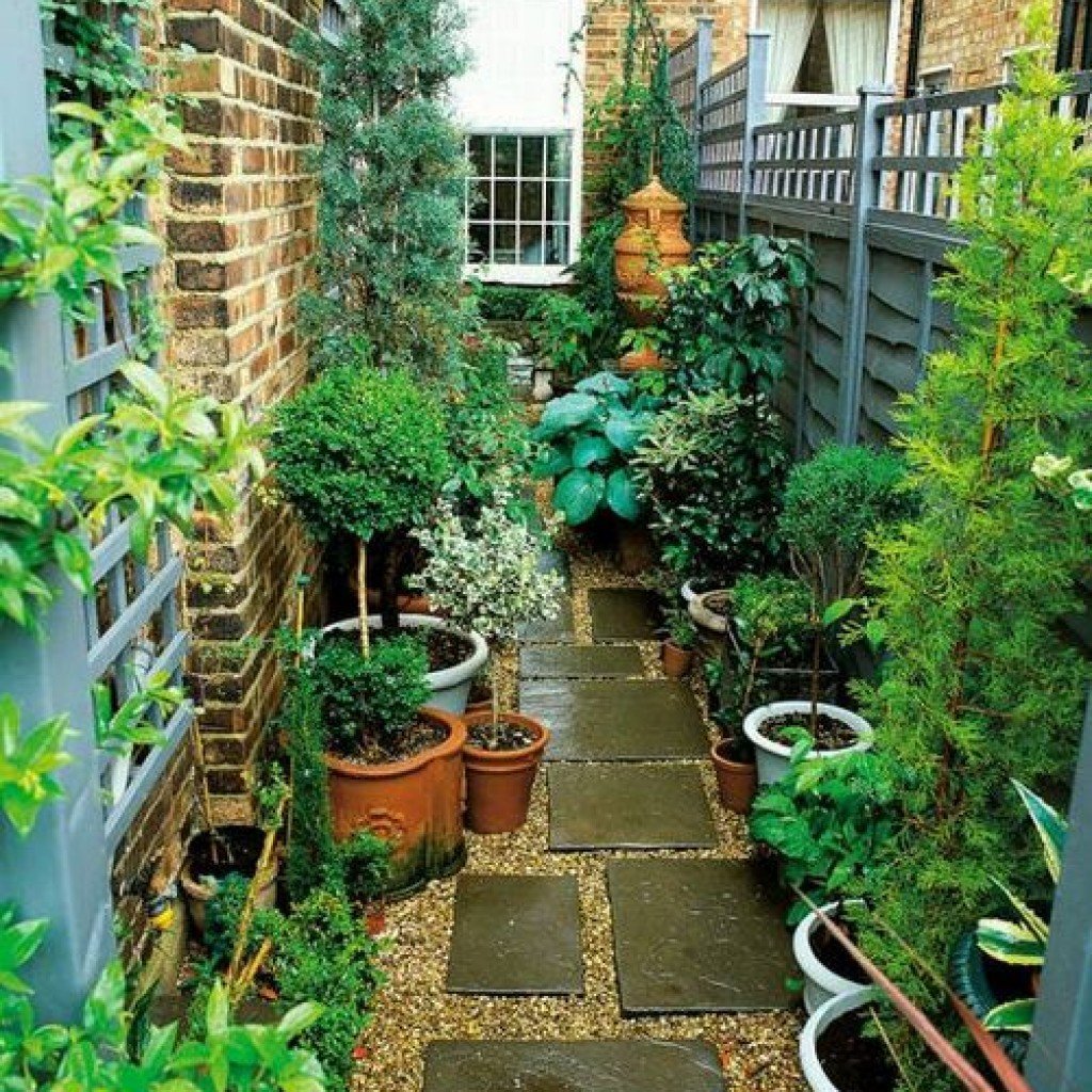 un jardín angosto en el que es imposible plantar árboles demasiado altos: oscurecerán el jardín;