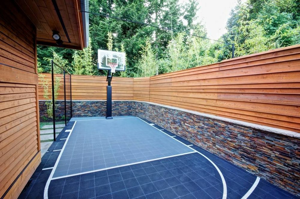 campo de deportes: la mayoría de las veces se coloca entre el área especializada y el lugar de descanso;