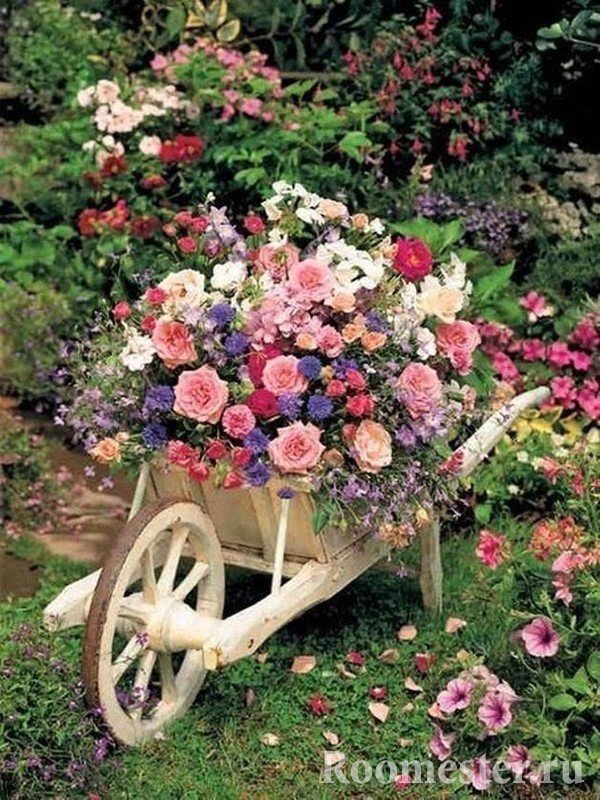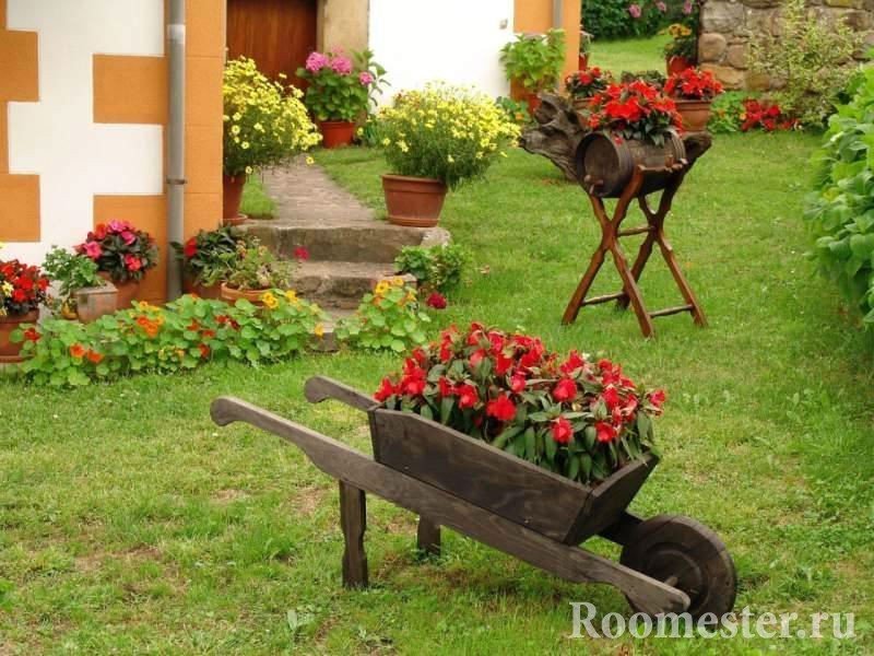 - Macizos de flores móviles. Las plantas o flores que no están adaptadas a algunas características del terreno (suelo, ciertas condiciones climáticas, una determinada estación) están expuestas en el paisaje del sitio en macetas o jarrones decorativos, sin trasplantar al suelo.