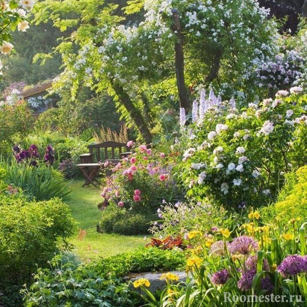 - Estilo country (country). El curso "casero" de estilo paisajístico, cuyos representantes son los jardines de las aldeas en diferentes partes del mundo. Una dirección arbitraria que no requiere grandes inversiones y un mantenimiento cuidadoso del sitio. La colocación de joyas es arbitraria, dependiendo del folklore histórico de la zona.