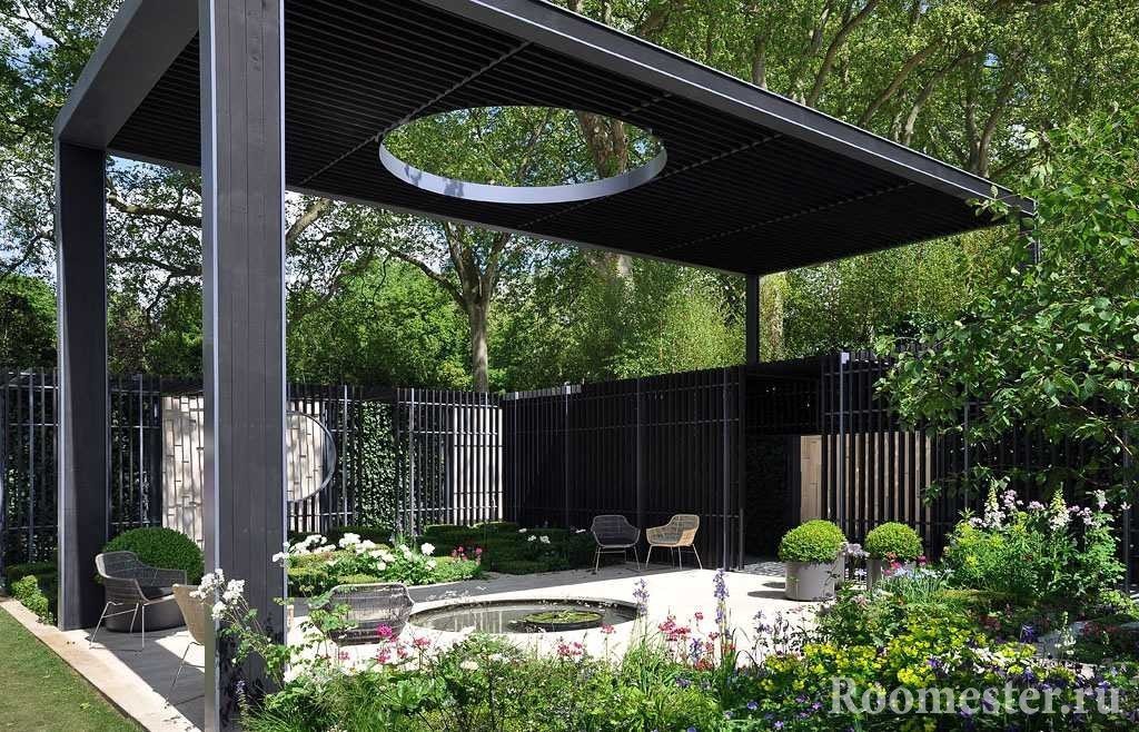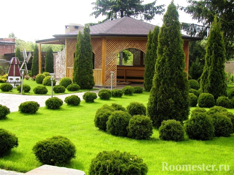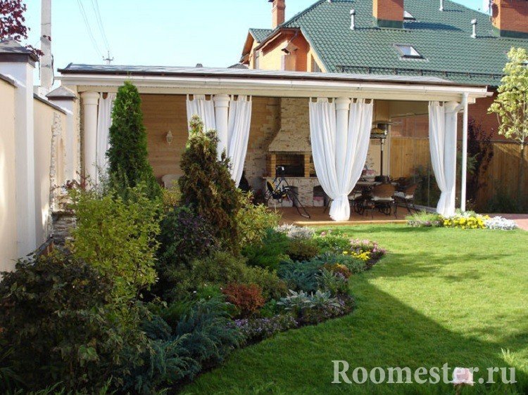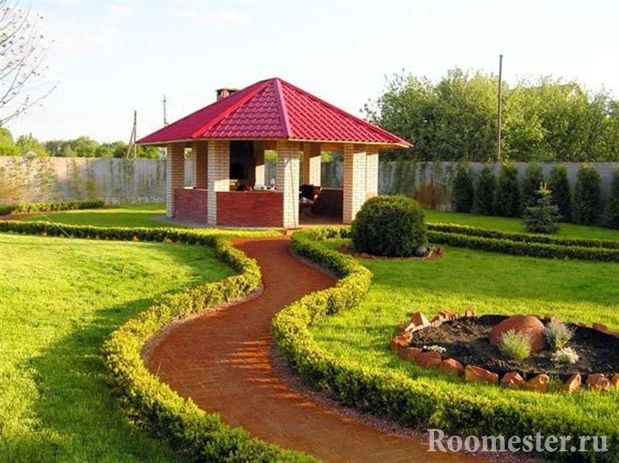 El comedor se puede organizar como cenadores de una variedad de materiales, rodear de setos o dejar césped en el espacio libre; todo depende completamente de los deseos de los propietarios.