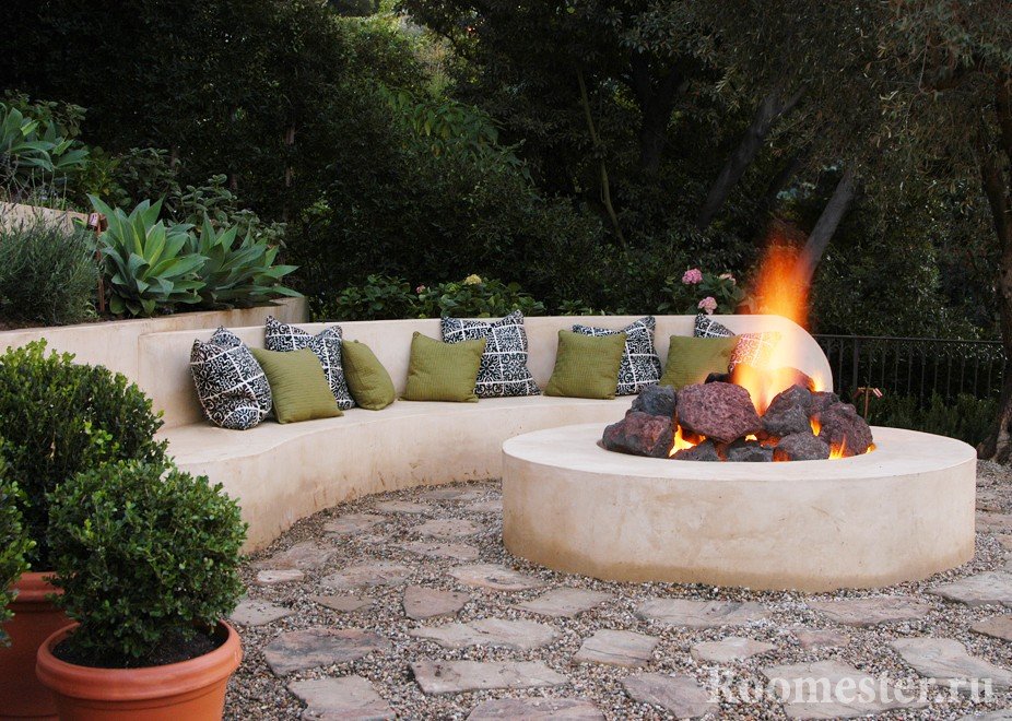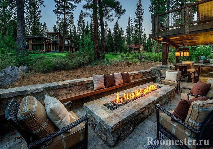 La ubicación en el área de recreación del brasero, el hogar o la chimenea al aire libre no es solo una parte de su interior, sino también un elemento funcional importante. Además de su propósito principal, puede usarse para calentar, creando un ambiente acogedor en las noches de otoño.