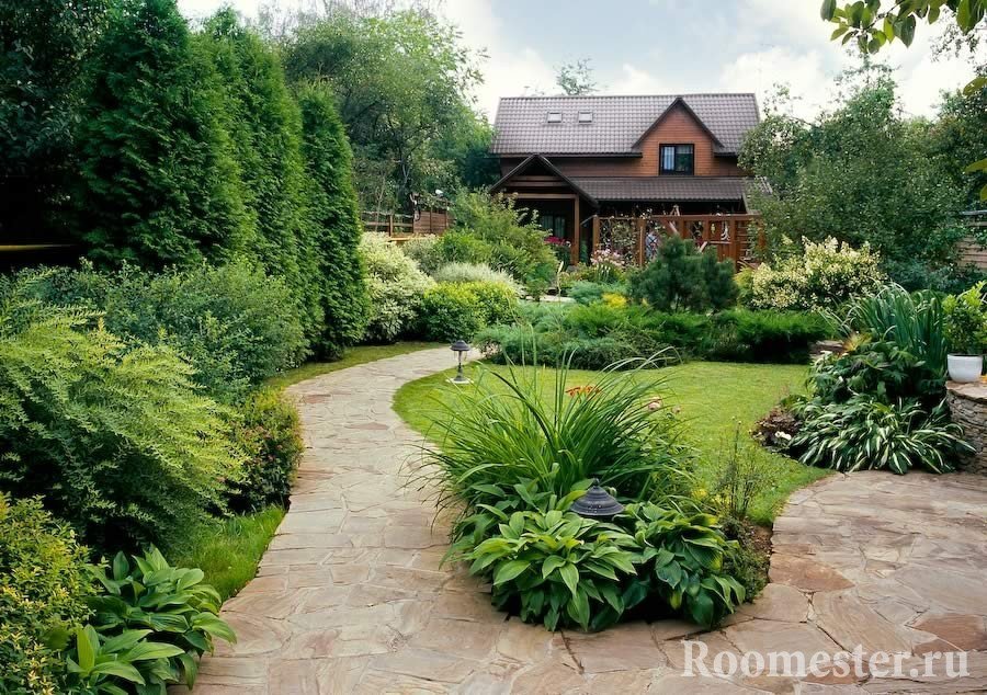 La cuestión más importante en los huertos familiares es la elección del material adecuado. En el diseño del paisaje, una variedad de acabados no es bienvenida, pero el uso de un solo material no es necesario. Lo principal en este negocio es la armonía y la uniformidad.