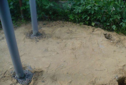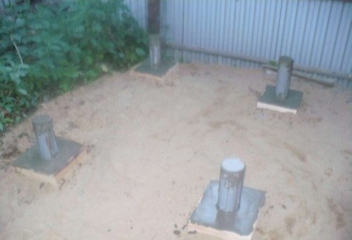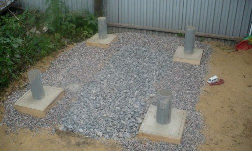 La mayoría de las etapas de la construcción de tales bases son exactamente las mismas. La profundidad del pozo para la inmersión de los elementos suele ser de 60 cm y puede desviarse de este indicador debido al agua subterránea y la resistencia del suelo. El encofrado se realiza en todos los pozos. Se colocan 3-4 varillas de refuerzo estrechas en los hoyos. Las bases de los postes están equipadas con impermeabilización, por ejemplo, con la ayuda de material para techos. A continuación, se prepara una mezcla de concreto. Se le agrega piedra triturada. Después de alcanzar una cierta resistencia, se quita el encofrado, pero en algunas situaciones se puede dejar.