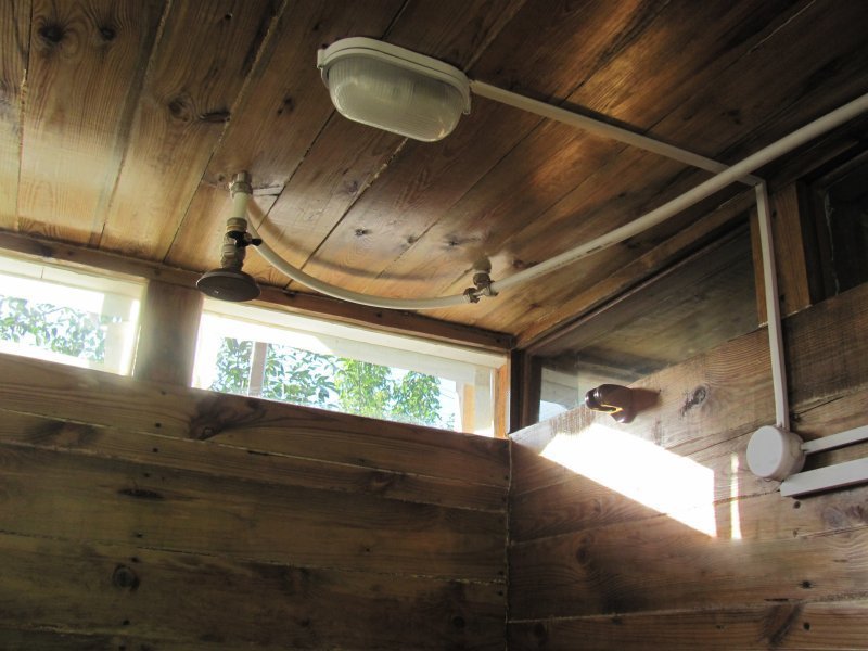 Una de las formas más fáciles de proporcionar uno y el otro es una pequeña ventana en la parte superior de la pared. Sin embargo, en la oscuridad, esta opción es inútil. La iluminación se puede hacer con la propia mano. Necesitará un diodo, un radiador para su colocación, un interruptor de palanca, un recipiente de vidrio en forma de hemisferio vacío con un orificio para el interruptor. También necesitará una batería y una fuente de alimentación. Si la electricidad se llevará a cabo en el interior, entonces deberá guiarse por las reglas para tender cables eléctricos en habitaciones con alta humedad. La ventilación de la sala se realizará principalmente mediante un sistema de escape natural. Un ventilador común puede trabajar en la pared. Si la ducha tiene espacio libre en la parte inferior, por ejemplo, entre las piernas, esto es suficiente para mantener la frescura en la cabina. Incluso en la pared, puede cortar un pequeño fragmento para usarlo para ventilación forzada temporal.