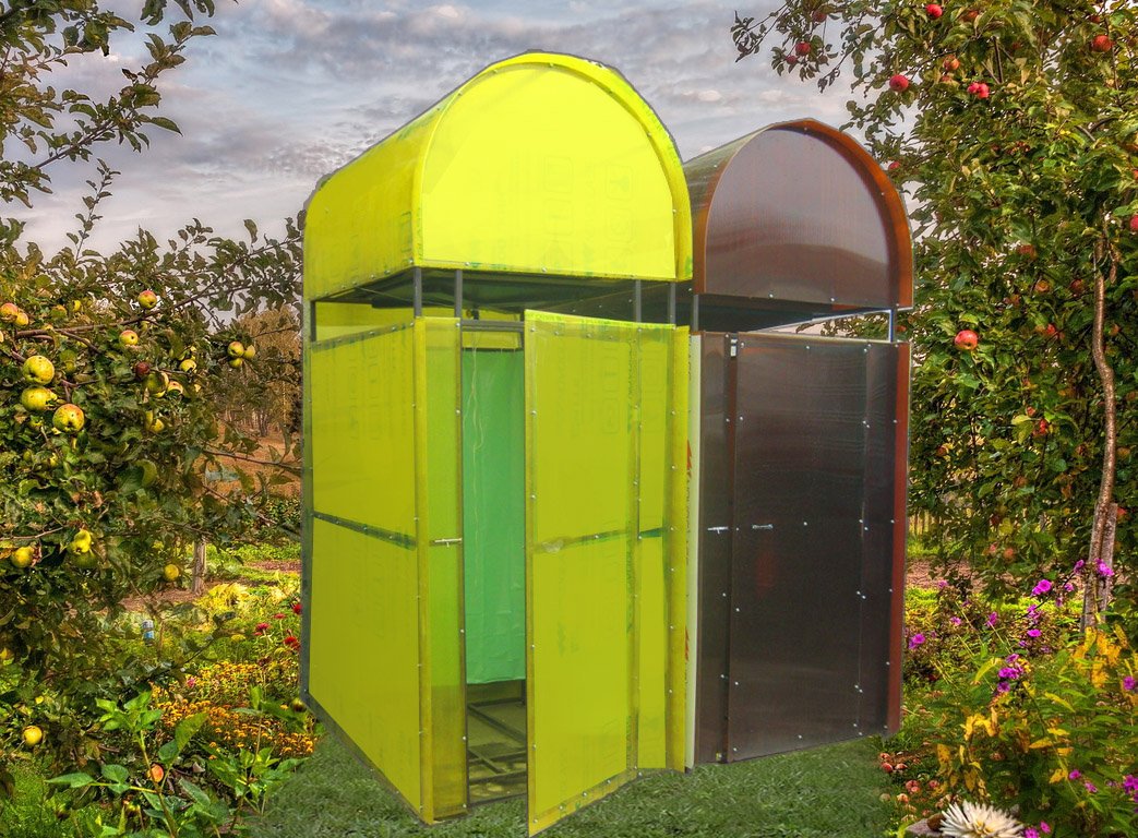Si usa policarbonato, la ducha resultará práctica y compacta. Este material es flexible y puede tomar cualquier forma. La cabina de policarbonato es fácil de instalar e instalar en casi cualquier lugar. Gracias a este material, puede utilizar cualquier opción para el suministro de agua, hacer una ducha de cualquier tipo. No se necesita cuidado especial para el policarbonato; no se pudre, no se presta a la corrosión y no tiene "miedo" a la humedad. Un material como el ladrillo está representado por una amplia gama. Para colocar los cimientos y levantar las paredes, es mejor usar corpulento. En general, el material se caracteriza por su resistencia a influencias externas, durabilidad y alta resistencia. El ladrillo se puede utilizar para la construcción de un solo elemento: el plato de ducha. Otro material importante en la construcción, el cartón ondulado, se utiliza para colocar techos y paredes. Sus ventajas son dureza, resistencia y apariencia atractiva.