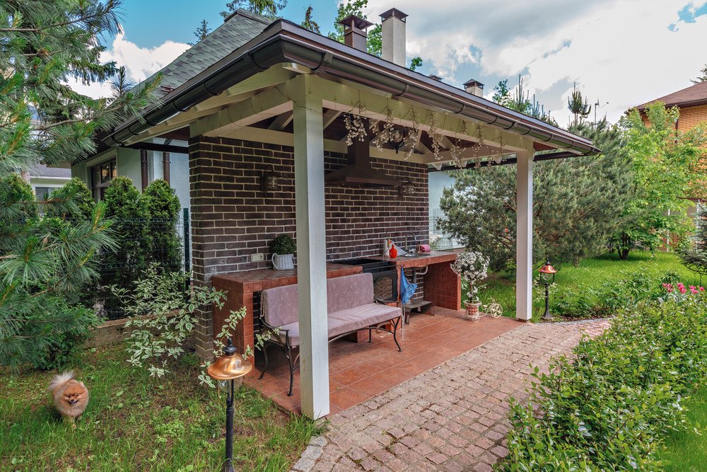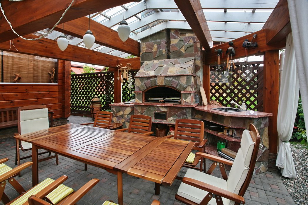 Las zonas de barbacoa cerradas requerirán más tiempo y esfuerzo. Aquí tendrá que colocar los cimientos, colocar soportes, arreglar el dosel, construir al menos una pared como protección contra el viento. El trabajo se paga solo, porque ahora la compañía no teme al mal tiempo y nada estropeará los planes para el fin de semana. En cuanto al tamaño del sitio, se eligen según las dimensiones del horno, las capacidades del sitio y la cantidad de personas que se reunirán para las reuniones. Para noches familiares tranquilas, un área de 5-6 metros cuadrados es suficiente. Los fanáticos para invitar a los invitados y celebrar cada día festivo con una ruidosa multitud de dicha plataforma, por supuesto, no es suficiente.