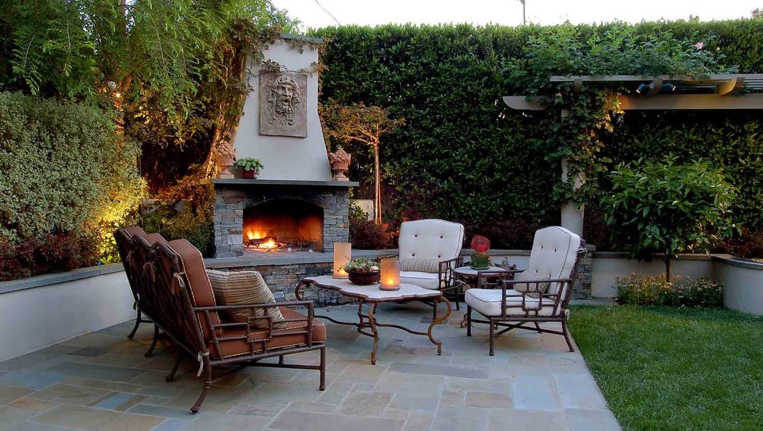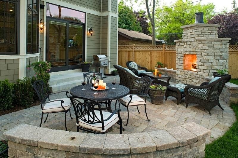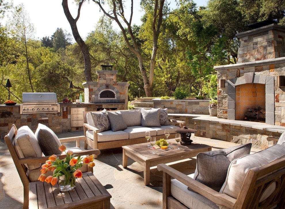Patio Área de patio cercado sin un dosel al aire libre. Se complementa con una valla, una pared de la casa, rejas, espacios verdes (árboles, arbustos). Los patios elegantes con muebles de jardín suaves se ven muy tentadores, pero este tipo de arreglo no es adecuado para regiones con condiciones climáticas caprichosas. Es suficiente llover y todo lo demás se echará a perder.