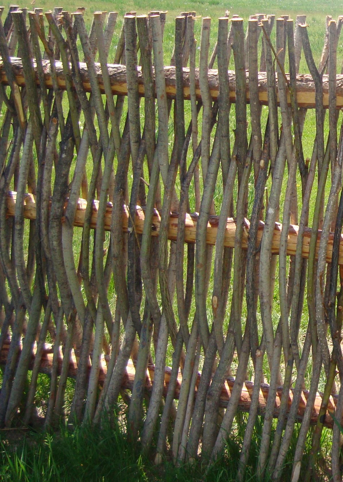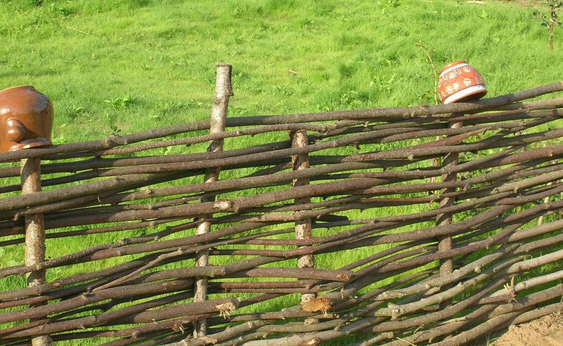 Tales cercas generalmente están tejidas de sauce o avellana. Estas plantas tienen ramas largas, lisas y flexibles, prácticamente sin procesos transversales. Esta materia prima es simétrica, esta es una ventaja importante. A veces se usan tallos de caña, ya que se doblan bien, pero el diseño es frágil. El bambú es especialmente duradero, pero habrá que pedirlo. Para crear cestería, se usa una vid sin corteza. El cálculo de la cantidad requerida de material se realiza "a ojo". Un brazo es suficiente para una cerca con una altura y longitud de 50 cm. Este valor no es constante y puede desviarse en la dirección de disminución o aumento, ya que el diámetro de las varillas puede ser diferente y la densidad del tejido se selecciona individualmente. Tyn puede erigirse a partir de ramas jóvenes de muchos arbustos y árboles, pero solo a una cierta longitud, desde 1 metro. En este caso, el trabajo será más difícil y el tejido en sí será caótico.