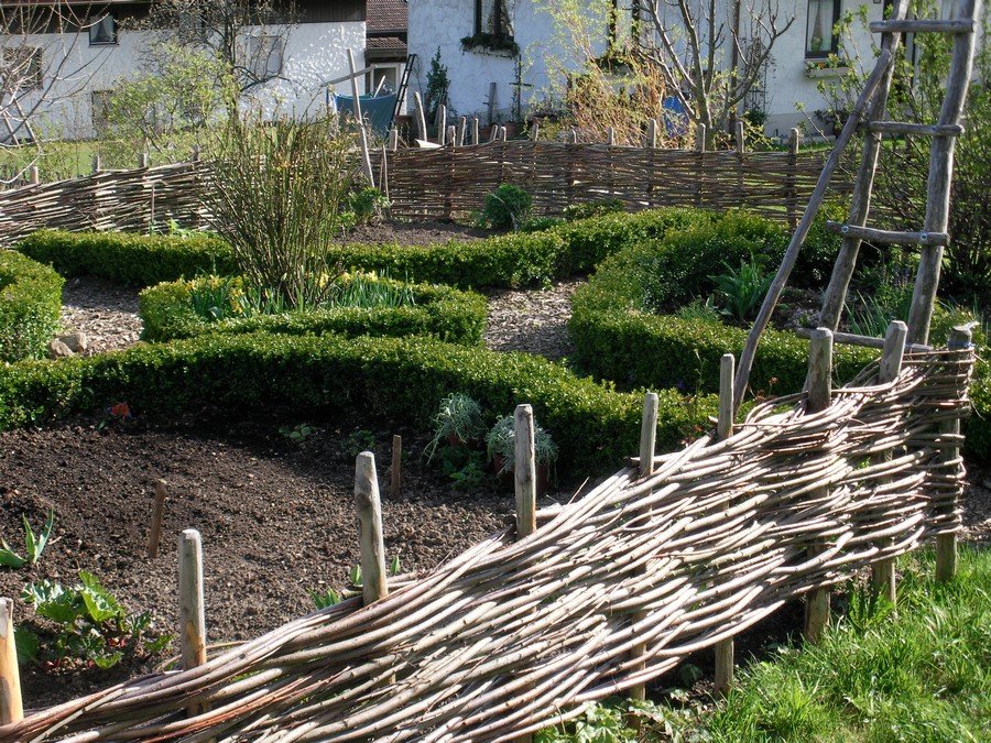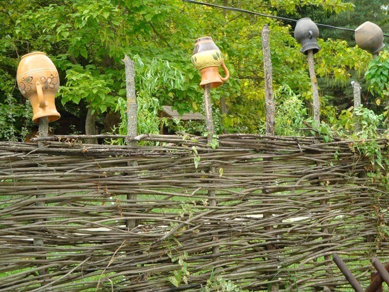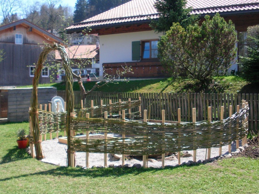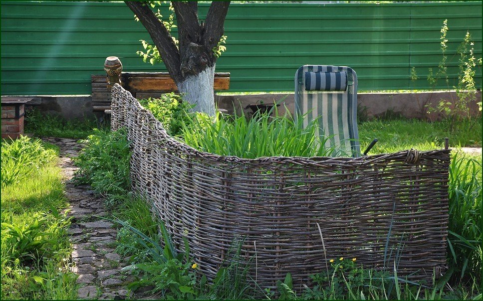 Por lo tanto, protegen pequeñas parcelas de tierra. La cerca de zarzo también se usa como cercas adicionales dentro de una propiedad privada. Las opciones bajas también se erigen a lo largo de los caminos. A menudo se usan para separar jardines, huertos y parterres del resto del espacio. Con una cerca de zarzo, el territorio de dos sitios vecinos está perfectamente delimitado. Las cercas bajas y medias no proyectarán una gran sombra en ninguna dirección. Las ramas son excelentes para construir particiones utilizadas para zonificar el territorio. Así que equipa verano y parques infantiles, cenadores, terrazas. Las cercas también se utilizan para decorar la zona para la barbacoa.Se pueden ver cercas de mimbre bajas en restaurantes temáticos. El zarzo es un elemento importante para expresar el estilo étnico. En las casas de campo y otras propiedades, la cerca de mimbre se combina perfectamente con otros artículos de mimbre: sillas, mecedoras y mesas.