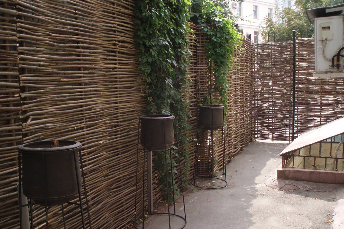 Los matices anteriores implican la reparación frecuente de la valla, así como una mayor apertura del sitio para su revisión por personas no autorizadas. Las principales ventajas de la zarza son el bajo costo y la facilidad de los consumibles. Las cercas de mimbre son relevantes para este día y se combinan con muchos estilos de diseño del sitio.