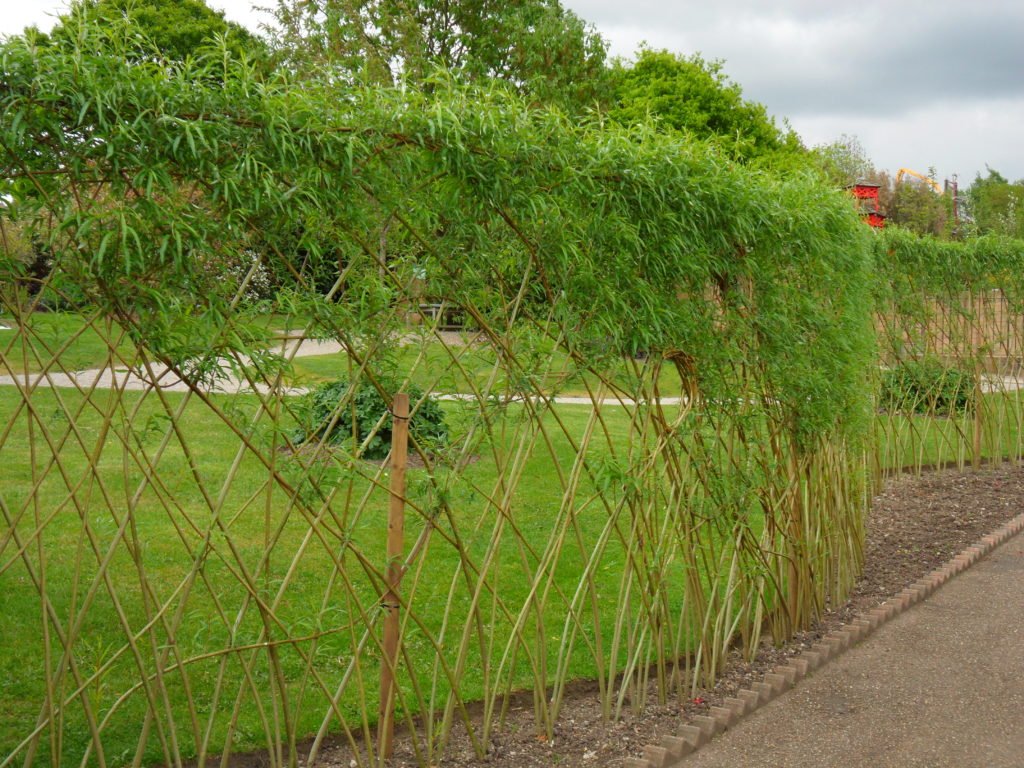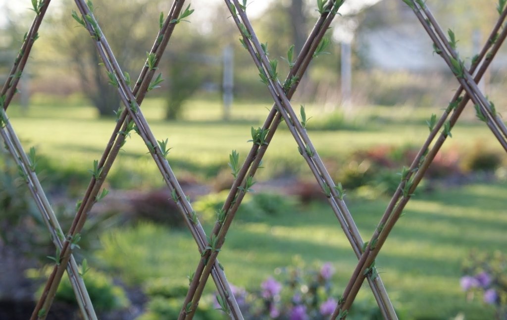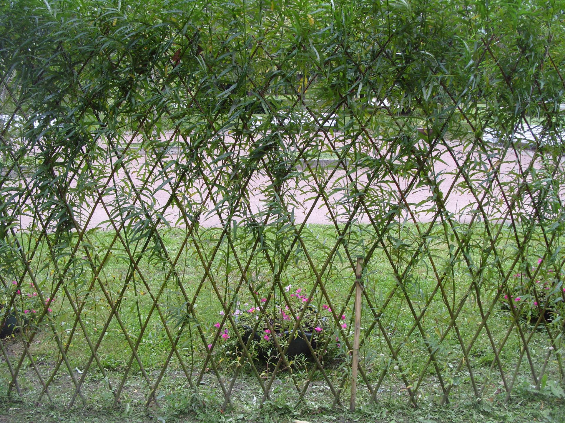 Tal cerca crecerá y tendrá grosor. Las ramas que se han vuelto demasiado altas se cortan o se dirigen hacia abajo. El zarzo vivo prácticamente no protege el territorio, sin embargo, se puede hacer un separador de zona dentro del sitio.Para recolectar zarzo vivo de una dirección vertical, primero deberá preparar el suelo. Para hacer esto, seleccione lugares debajo de las publicaciones de soporte. Seleccionamos la distancia entre los elementos dentro de 1-1.5 metros. Luego, los soportes (de 4 a 5 centímetros de grosor) se introducen en el suelo 40 o 50 cm. Para facilitar este proceso, primero se deben afilar los extremos inferiores de los soportes. A continuación, arreglamos los registros transversales. Usando un cable, instalamos varillas más delgadas en varias filas (3 es suficiente a una altura de 1,5 metros). Entonces llega el momento de plantar ramas. Sumerja los brotes de hasta 3 cm de espesor en el suelo en 30 cm. La distancia entre los tallos no debe ser inferior a 10 y superior a 30 cm. La zarza viva crecerá y hará que la composición sea más densa.
