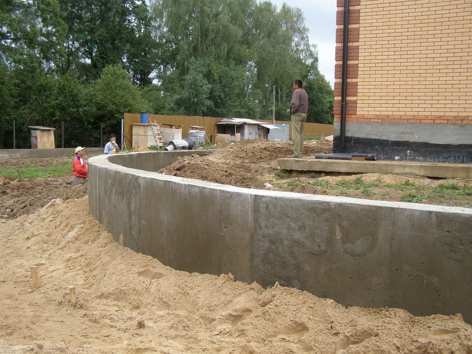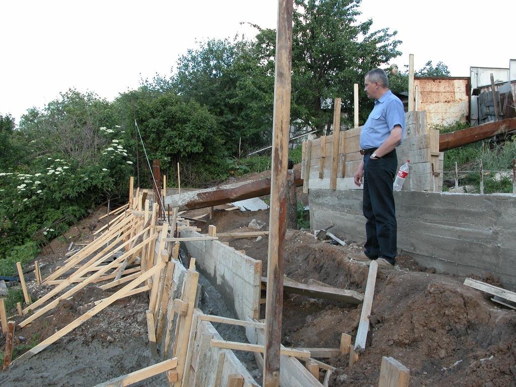 La base se forma debajo de las paredes por encima de 30 cm. La profundidad de la base aumenta a medida que el suelo se afloja. Una base con una relación de 1: 4 en relación con la parte del suelo se vierte en un sustrato denso. Un tercio de la cerca se coloca en suelos medianos y blandos. En un terreno suelto e inestable debajo de los cimientos, debe dejar la mitad de la altura total. Las opciones de base más confiables incluyen piedra triturada o grava y arena compactada con cemento o arcilla. La solución se vierte en el encofrado preparado según el principio de una base de tira. El dispositivo de un muro de contención normal proporciona una base fuerte y la misma cerca. El edificio está protegido de la destrucción interna por una capa de impermeabilización. Las medidas para contrarrestar la influencia de la humedad incluyen la organización de drenajes y drenaje. La ruta de drenaje debe planificarse con anticipación.