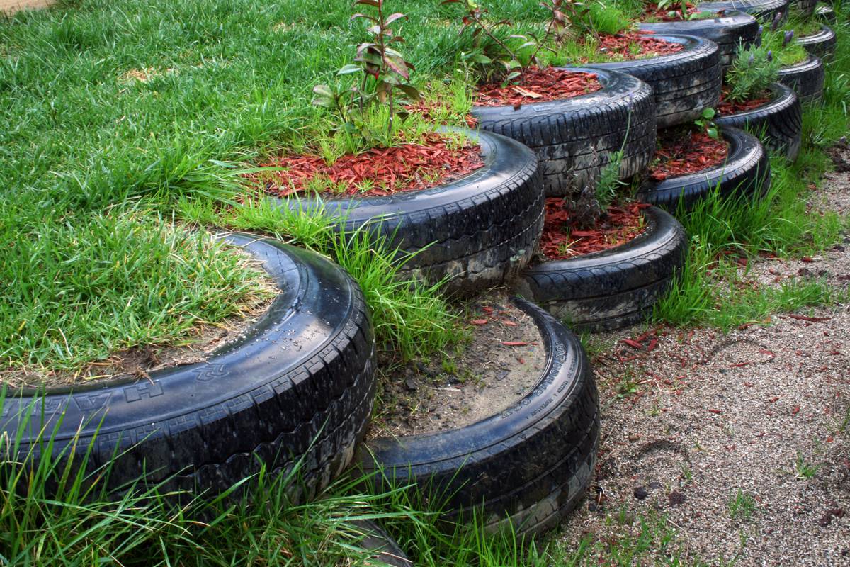 Una de las opciones más baratas y que consumen menos tiempo. Además, en los servicios de neumáticos, los neumáticos a veces se regalan por nada. Los neumáticos se tratan con productos refractarios y se instalan lejos de edificios residenciales. Durante el proceso de construcción, los neumáticos viejos se colocan en filas en columnas. Las pilas de ancla se conducen al centro de cada una. Luego, los neumáticos se llenan densamente con arena y grava, a menudo también con tierra. Las filas están atornilladas. El cercado de los neumáticos también se erige por el método de colocación. Una pared lateral está cortada con neumáticos. La primera fila está llena de arena y grava hasta la parte superior. Se coloca material de hoja fuerte sobre él. Cuanto más pesada sea la capa, más confiable será la pared. Las filas posteriores se colocan de acuerdo con el mismo principio, algo similar al ladrillo. Luego, la pared se fija con pilas de ancla desde el exterior; sin ellas, toda la estructura se puede desplazar.