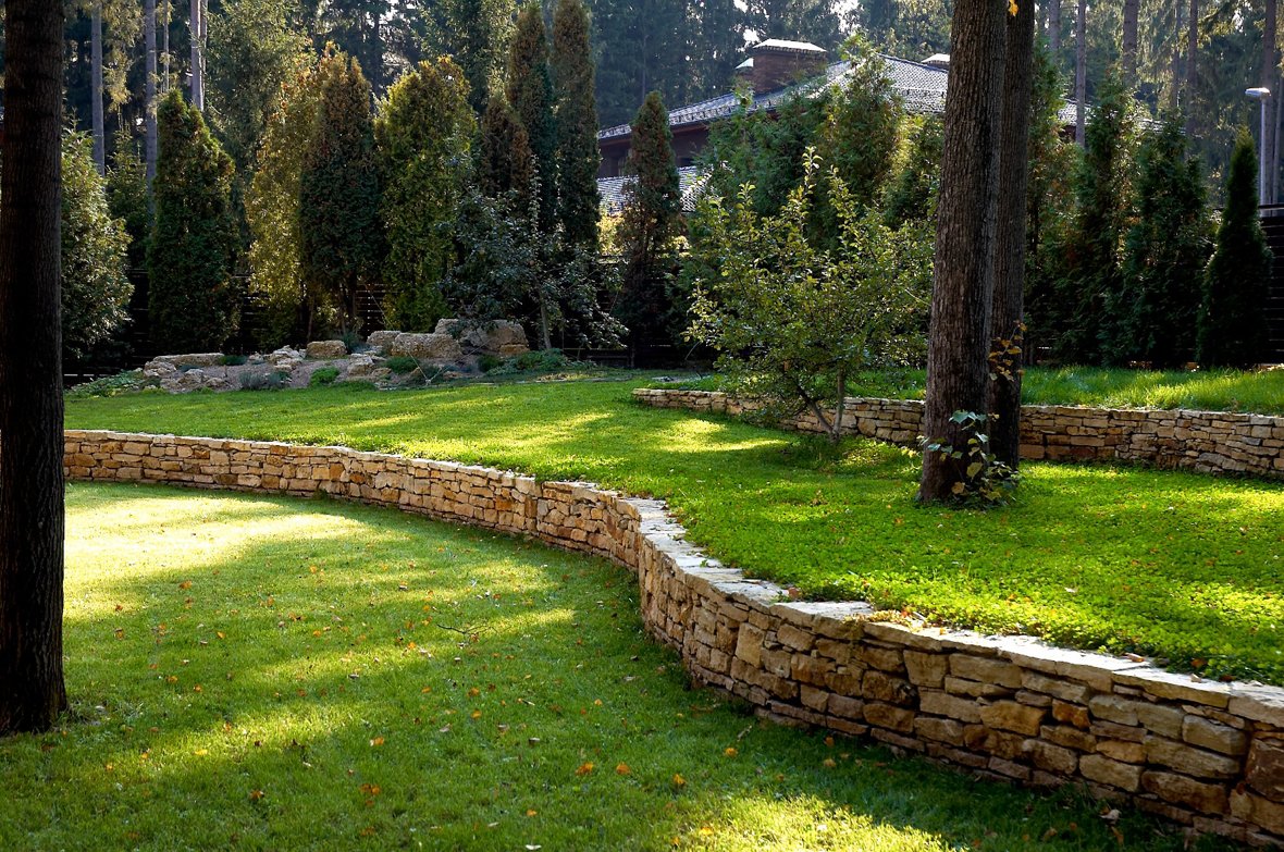 Las cercas de retención son de refuerzo y decorativas. Las paredes se utilizan por razones de seguridad: protegen contra deslizamientos de tierra y reducen la escala de posibles daños. Cualquiera que no quiera comprar un sitio de ayuda debe pensar en el componente de diseño. Después de todo, los muelles no solo mejoran el suelo, con su ayuda forman niveles y transiciones suaves, incluso paisajes en terrazas. Antes de la construcción de estructuras, estudian el suelo, los factores externos en términos de carga y presión, tienen en cuenta la cantidad de precipitación. Las paredes están construidas de piedra natural, madera, ladrillo, hormigón, pilotes y neumáticos. Los diseños especiales están hechos de geotextiles, marcos de metal. En cercas altas, se coloca una base, generalmente una base. Luego se erige la parte principal de la pared, dejando una capa intermedia. Al final del trabajo, instalan un sistema de drenaje, drenaje e instalan impermeabilización.