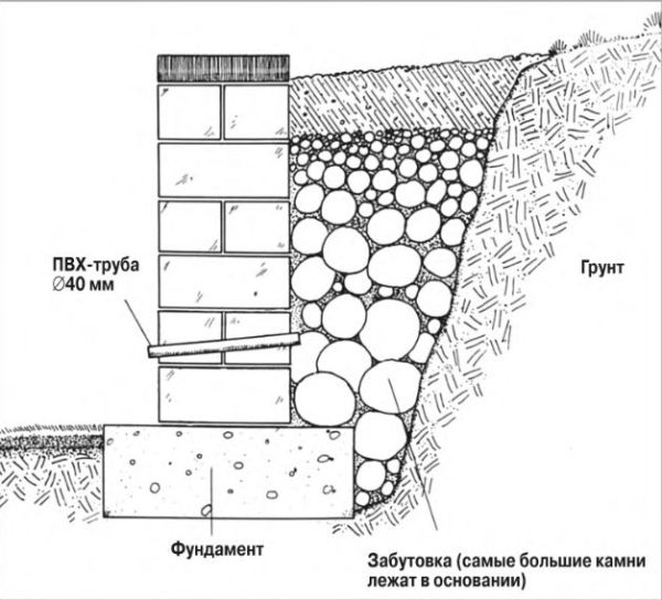 El método de construcción depende del material. En la mayoría de los casos, la parte de contacto de la pendiente está alineada. La construcción de una estructura de piedra se lleva a cabo utilizando grandes piedras que combinan la pared con el suelo en el nivel deseado, alrededor del cual se construye una cerca. Al mismo tiempo, mantenga la distancia para la capa de drenaje. Se organiza a través de lagunas. Las piedras se recogen en mosaico y se sujetan con una mezcla de cemento.En el medio, se plantan plantas con raíces fibrosas. Fortalecerán el muro. Además de esto, hay unos diez métodos más para aumentar la sostenibilidad. En primer lugar, el lado interno de la pared se erige en ángulo con respecto al suelo. Los bordes ásperos en el interior reducen la presión. Los gránulos huecos en el drenaje eliminan el exceso de carga. Las consolas alineadas afuera y las áreas de descarga en el interior del edificio también aumentan la estabilidad.