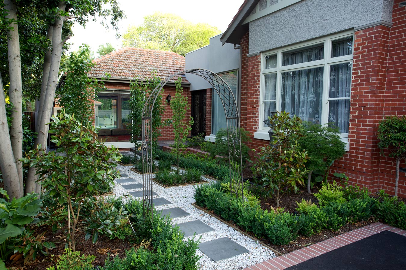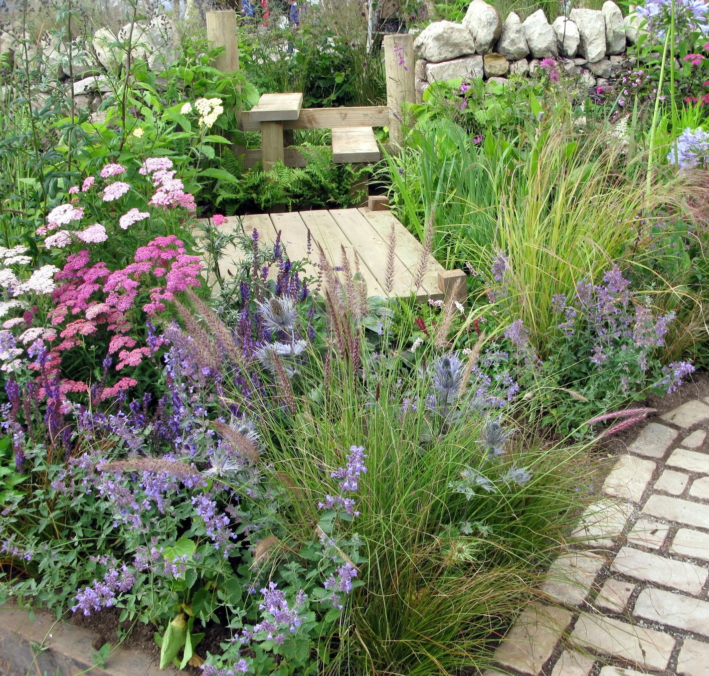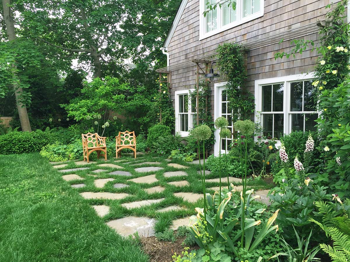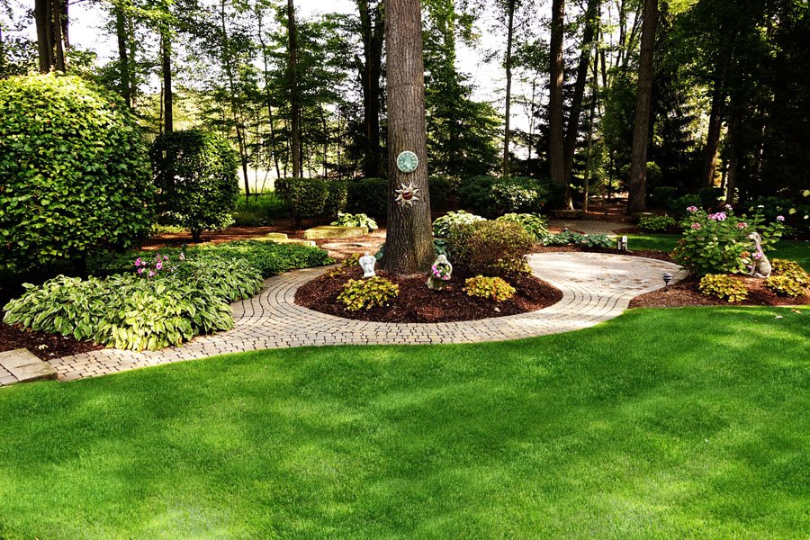 Los senderos del jardín se utilizan principalmente para zonificar el sitio. En los lados están decorados con cercas bajas, parterres de borde, parterres, parterres de cintas y bordes de mezcla, si el camino es adyacente a una cerca en blanco. Las pistas están hechas de guijarros, grava, grandes piedras planas, cortes de madera, tablas, hormigón, ladrillo, piezas de baldosas cerámicas dispuestas por el método de mosaico. El césped se planta en áreas libres de edificios, ya que la alfombra de césped se ve más efectiva si ocupa un área grande. Un césped similar se encuentra en los accesos al área de recreación, en verano se puede usar como campo de fútbol sala. Además del tradicional césped de atajo, también hay una versión morisca. No requiere cuidados especiales y es un lindo popurrí de hierbas de campo, cuya altura a veces llega a la cintura.