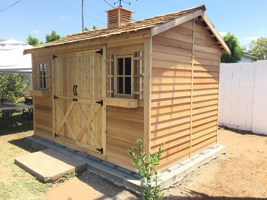 Determinar el tamaño óptimo del granero, preparando una parcela para ello. Cavar un hoyo es 5 cm más grande en cada lado que el tamaño del cobertizo.