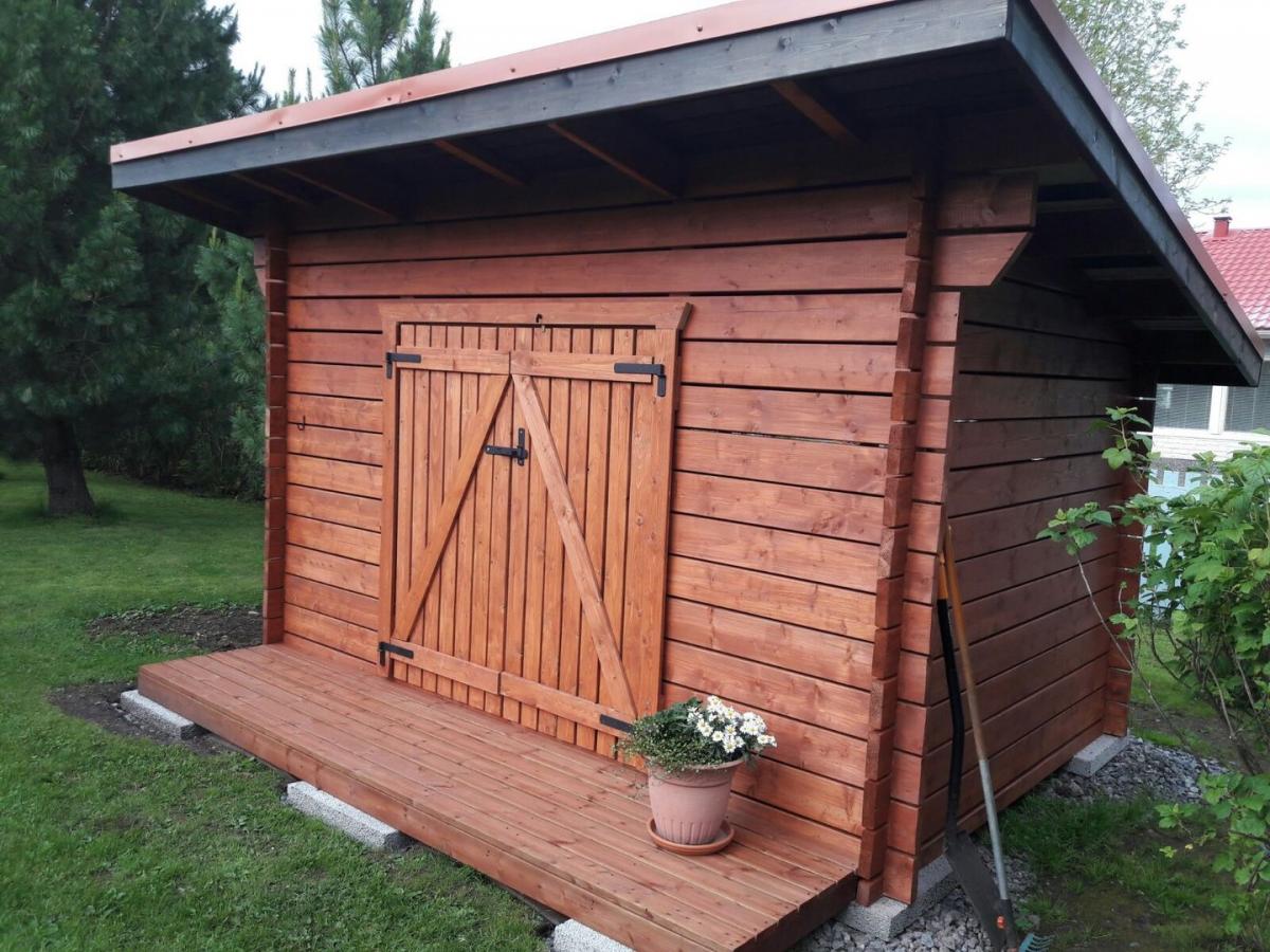Dado que la versión más común de los cobertizos son estructuras con un marco de madera, puede considerarse uno de los mejores. La disponibilidad de materiales facilita la construcción de una estructura confiable con sus propias manos. Además, debajo de un cobertizo de madera (incluso con revestimiento de metal), no necesitará llenar una base sólida. Esta característica le permite ahorrar tiempo y dinero en la construcción de la instalación. Para garantizar la larga vida del edificio, es necesario preparar inicialmente el árbol: trátelo con un antiséptico.Además, se recomienda realizar un tratamiento de tratamiento contra incendios. Tales composiciones eliminarán el peligro de quemar un marco de madera en una situación de fuerza mayor. También vale la pena cuidar de una ventilación adecuada. Esto asegurará una buena preservación del árbol. A continuación consideraremos todas las etapas de la construcción de un cobertizo para almacenar herramientas y herramientas de jardín.