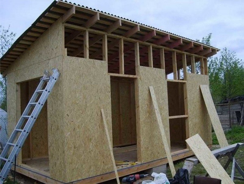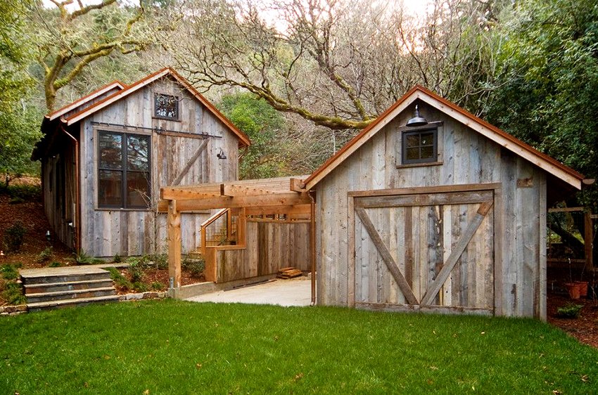 Inicialmente, debe determinar las condiciones en las que se operará el establo. En regiones con alta humedad e inviernos severos, es necesario cubrir las unidades económicas con revestimientos o revestimientos metálicos resistentes al desgaste. En regiones cálidas, proporcione un diseño de diseño rústico (que continuará después de muchos años), un corvina (paredes laterales de un tronco) o durmientes de madera viejos son adecuados. Es posible cubrir el granero de manera económica y práctica con tablas ordinarias, que los propietarios podrán pintar a su gusto en el futuro. Además, un tablero normal puede recubrirse simplemente con manchas y barniz. En cualquier caso, en la parte superior del marco, primero debe llenar la madera contrachapada o las tablas OSB.