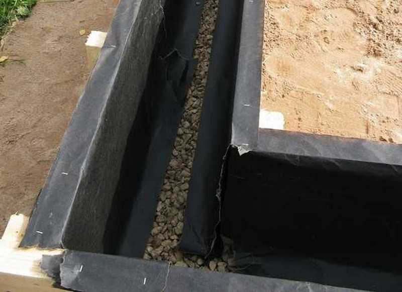 Llenando en el fondo de la zanja una capa de arena, grava y grava. El grosor total de la almohada debe ser de unos 15 cm.