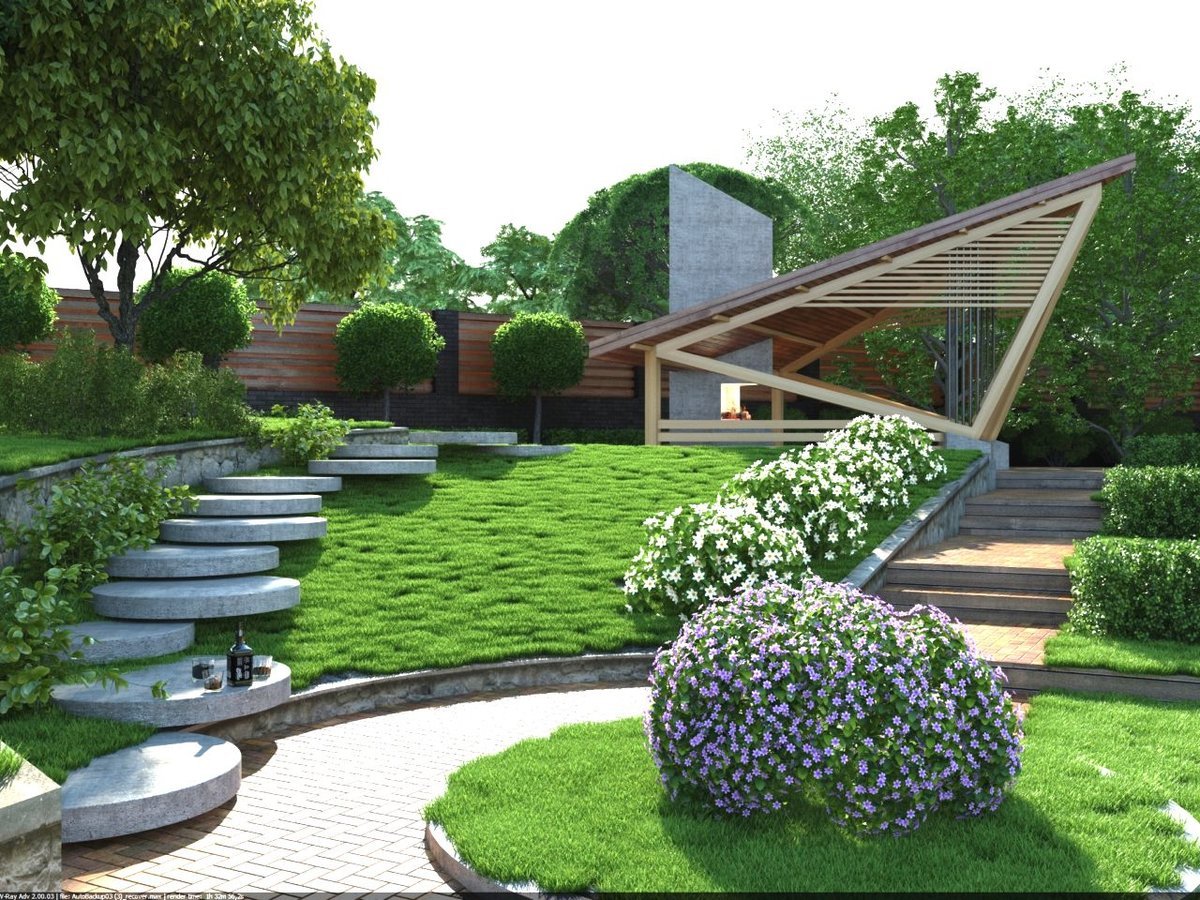 El diseño moderno del paisaje implica el máximo respeto al medio ambiente, por lo que no se recomienda talar árboles y arbustos en el sitio. Las excepciones son árboles viejos y secos que están en pésimas condiciones. Es mejor establecer caminos entre los cultivos de plantas grandes existentes. También vale la pena plantar nuevos árboles. Debería haber muchos espacios verdes, hacen del jardín un jardín completo. Destacan el diseño interesante del territorio, combinando todos los detalles del sitio en un solo sistema. Se deben plantar arbustos y árboles en el sitio en aquellos lugares donde puedan enfatizar la forma del relieve y los elementos de las estructuras del paisaje. Los espacios verdes se ven espectaculares cerca de las escaleras, muros de contención, curvas de senderos de jardín y cenadores.