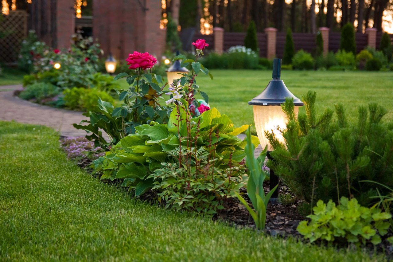 Paisajismo le permite hacer que el sitio sea hermoso tanto de día como de noche. La espectacular apariencia del área de la granja en la oscuridad se logra mediante una iluminación adecuadamente seleccionada. Hay muchas variedades de iluminación del paisaje.Cerca de los parterres, las puertas y las estructuras del edificio pueden soportar luces verticales estándar. Pero la iluminación desde el fondo del objeto del jardín le permite destacar su silueta. Si coloca un foco de iluminación desigual en el árbol, toda el área se iluminará con una suave luz de luna difusa. La iluminación separada también es requerida por los estanques en el sitio. Su iluminación debe combinarse armoniosamente con otra iluminación del territorio. En cuanto a las comunicaciones, en el marco del diseño del paisaje deben ocultarse de manera confiable de las miradas indiscretas. Los sistemas de ingeniería que deben estar bellamente decorados incluyen los siguientes sistemas: