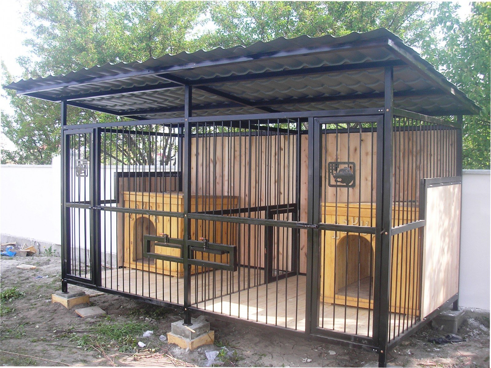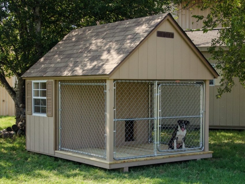Para proteger al perro de los golpes, la estructura está equipada con tres paredes sólidas, y una está hecha de una rejilla metálica, cuyas varillas están ubicadas exclusivamente verticalmente. Algunos propietarios hacen solo dos paredes cerradas para aumentar la luz, una revisión para la mascota para que no se sientan limitados.