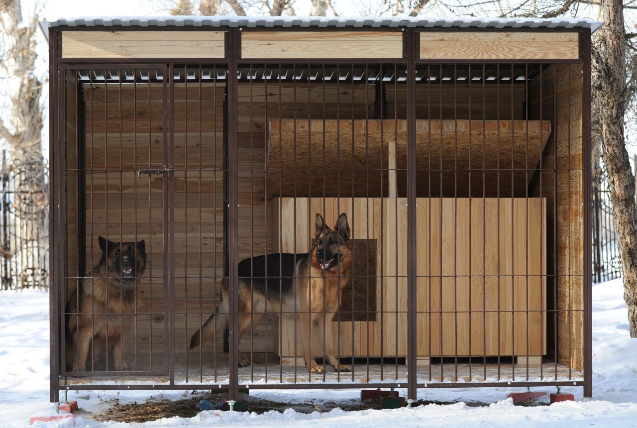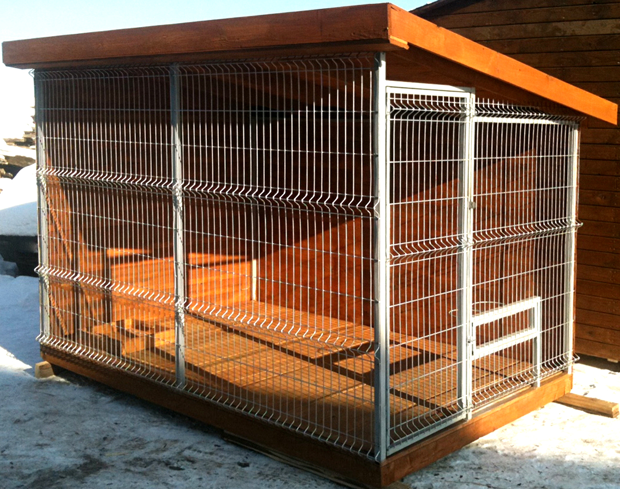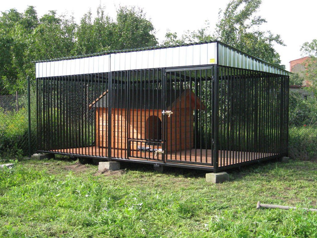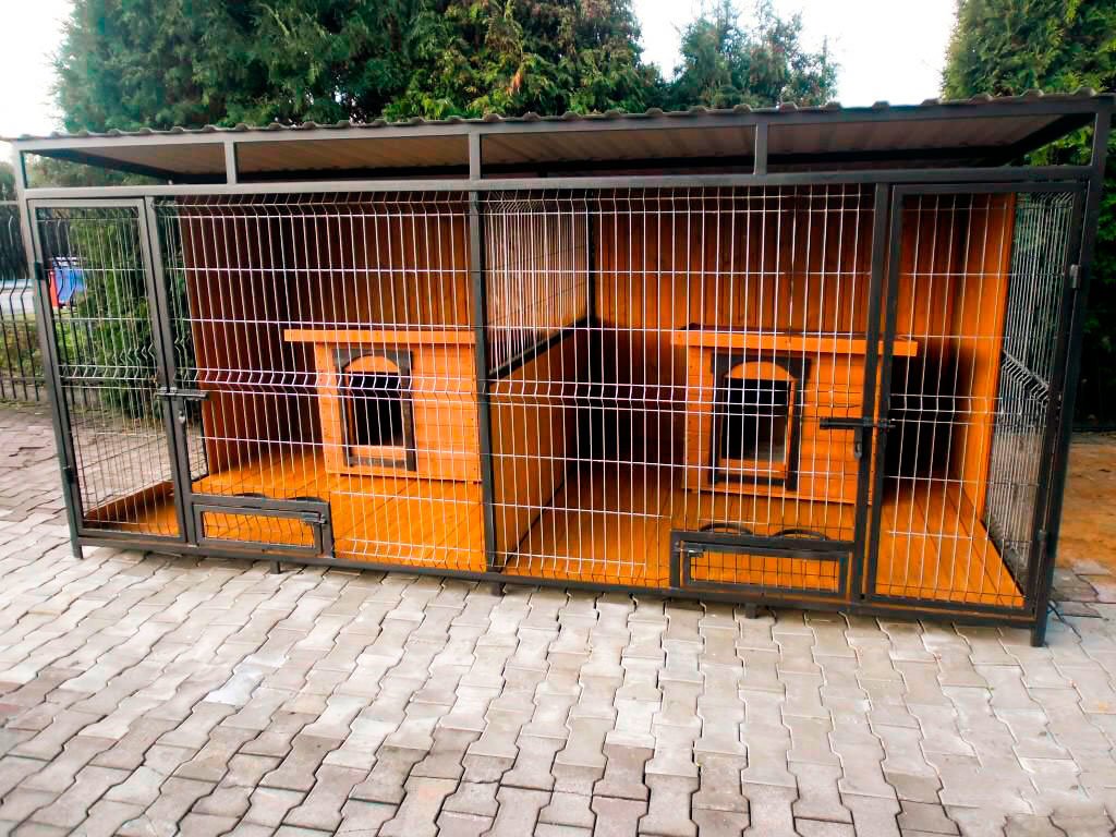 Temporal. Las estructuras se caracterizan por cuatro paredes abiertas. Son una plataforma vallada por todos lados por barras de metal. Para la comodidad del perro, se instala una cabina en el interior o se equipa un piso. Los modelos a menudo no están cubiertos con material para techos.