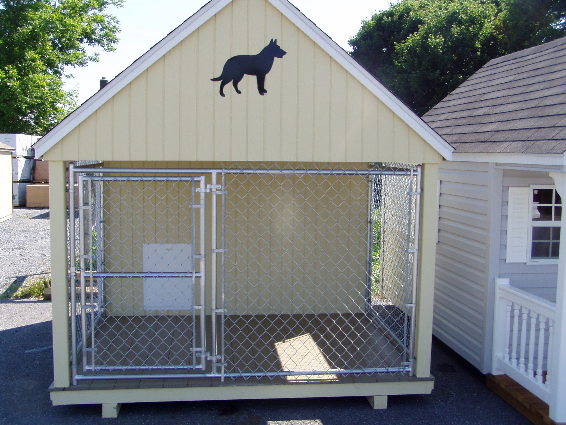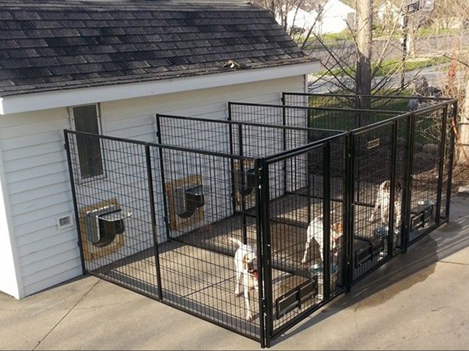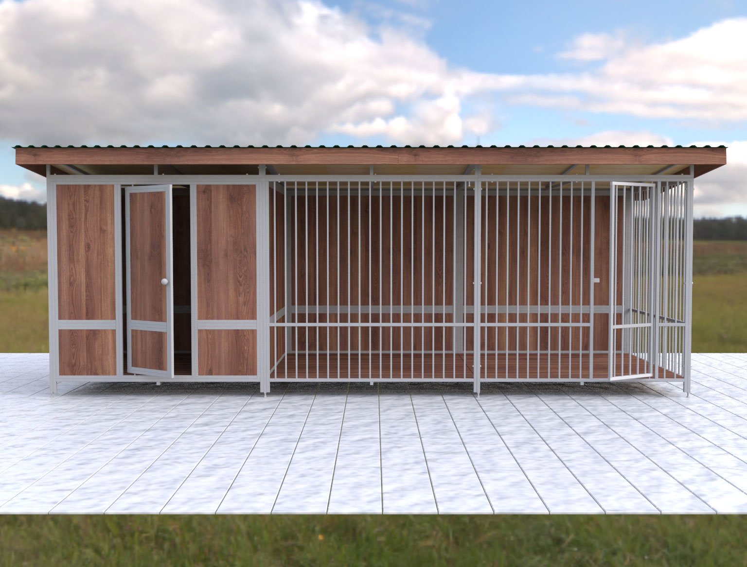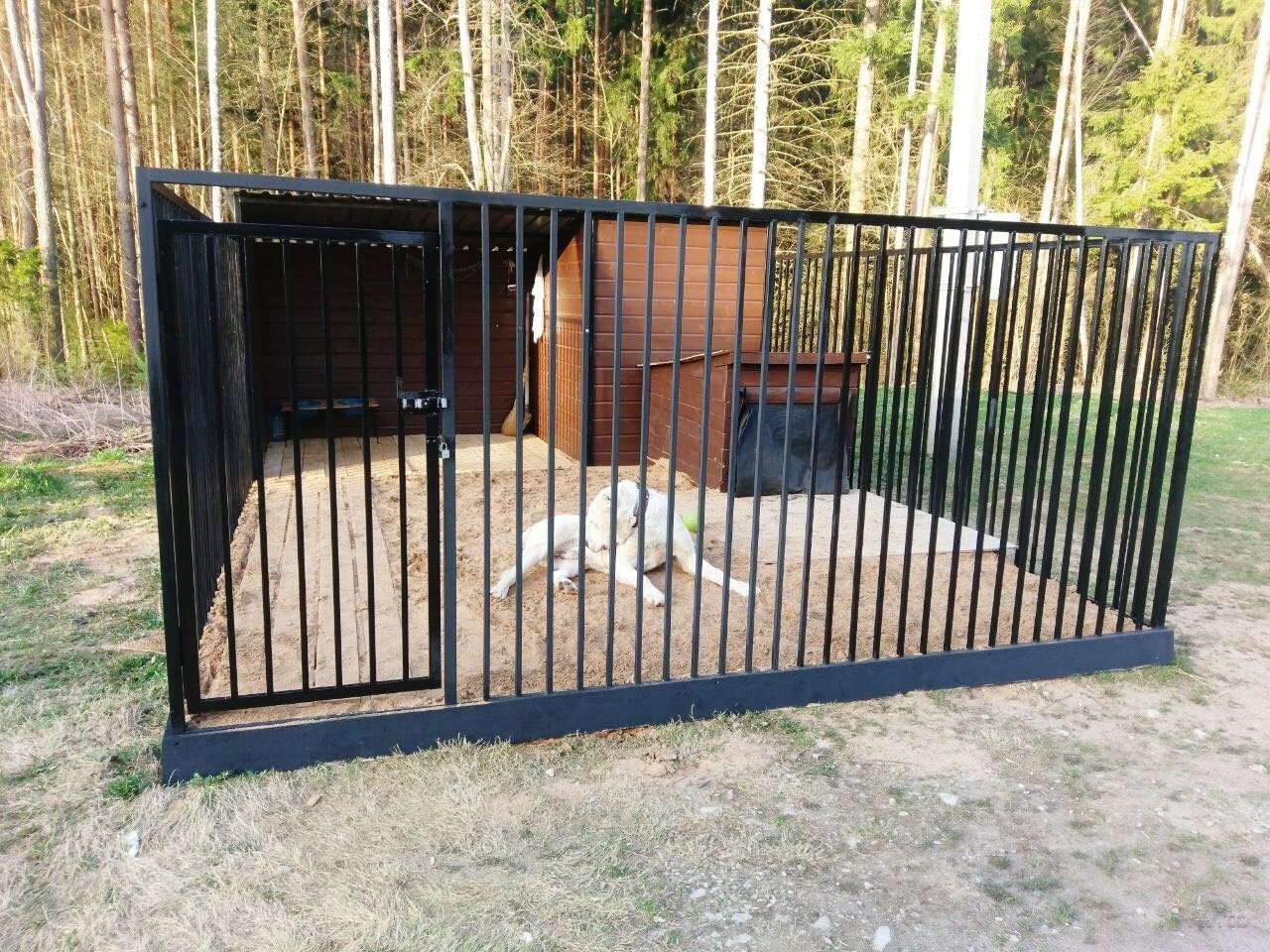 Temporal. Las estructuras se caracterizan por cuatro paredes abiertas. Son una plataforma vallada por todos lados por barras de metal. Para la comodidad del perro, se instala una cabina en el interior o se equipa un piso. Los modelos a menudo no están cubiertos con material para techos.