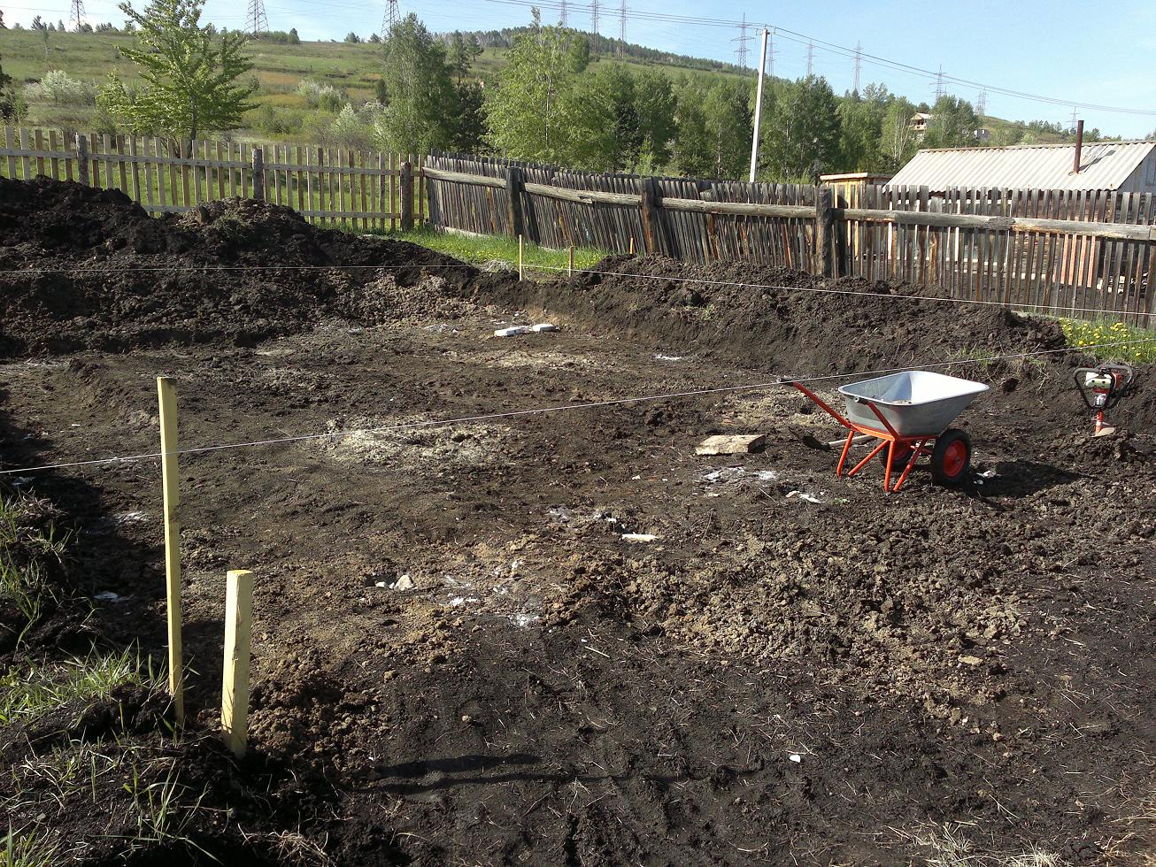 Una zanja cava con una profundidad de 45-50 cm, un ancho de 30-40 cm.