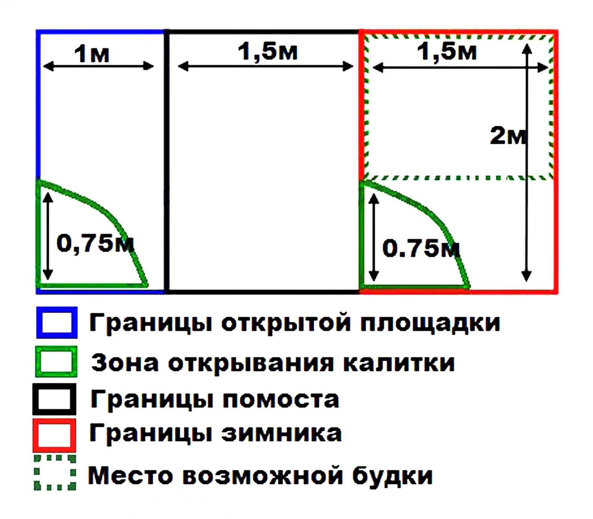 El área de construcción no supera los 6 m2.Si es más grande, entonces el animal comenzará a sentir incomodidad, miedo.