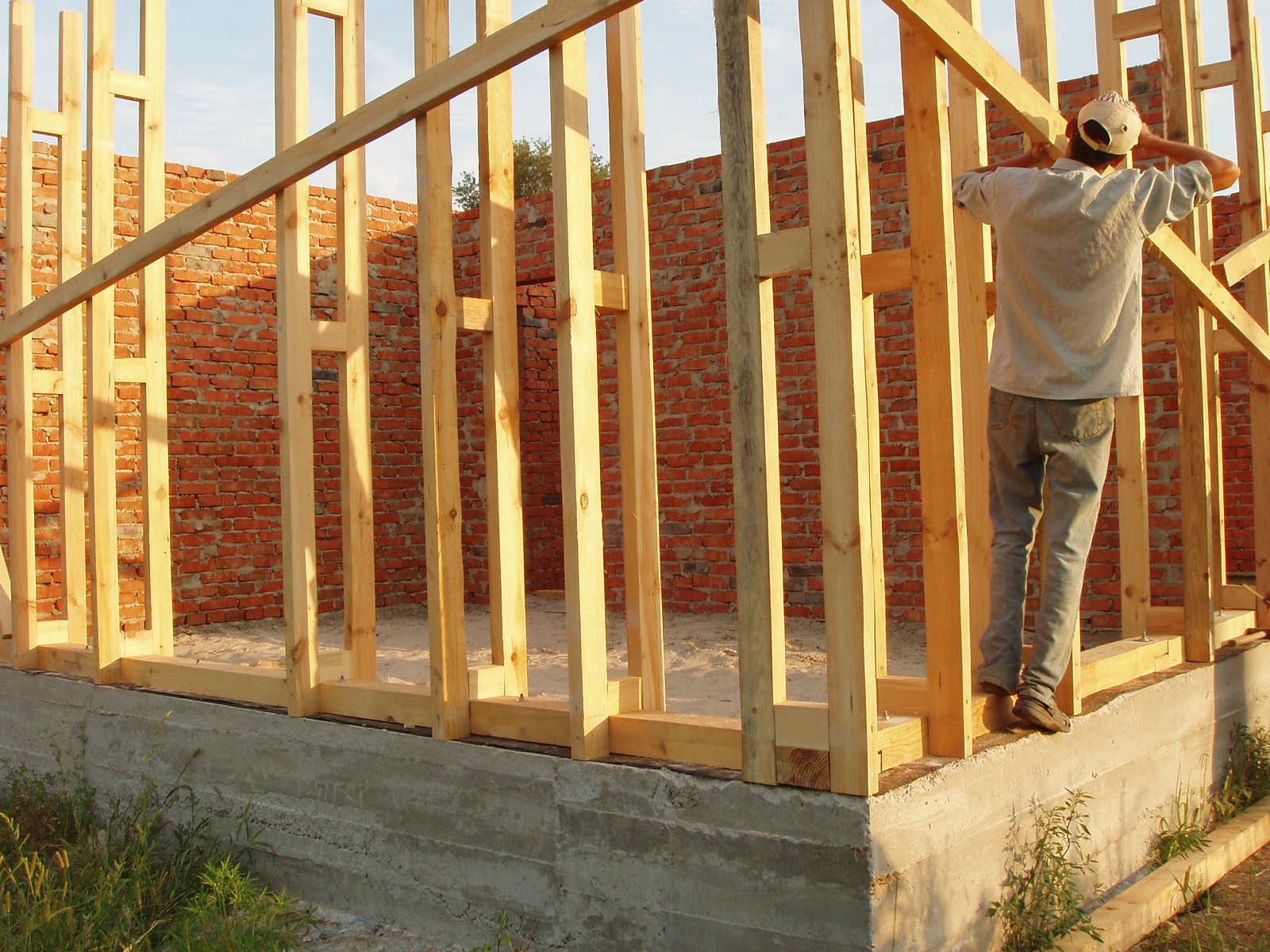 construcción de paredes, listones de piso, dosel.