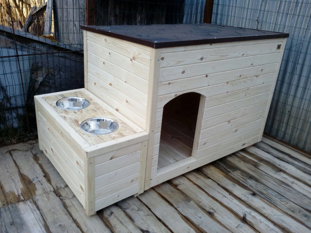 Caseta para perros y lugar de alimentación