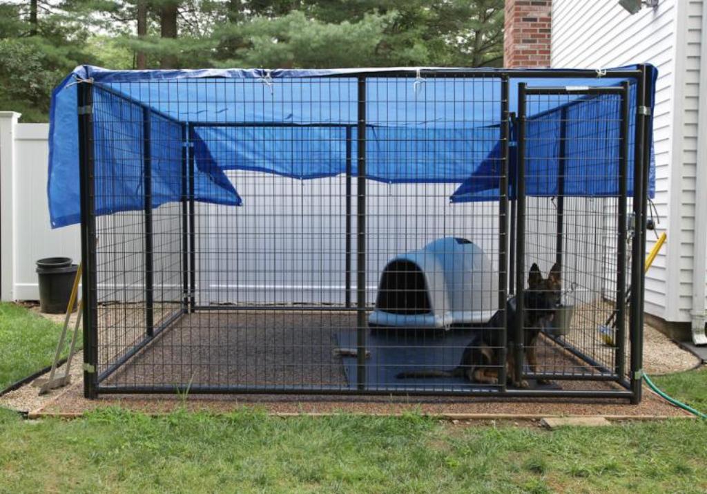Puede prescindir de un techo, proporcionar cobertura parcial. Los perros pequeños no pueden estar bajo la lluvia y el sol brillante.