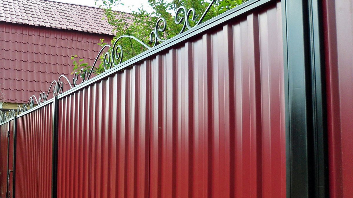 Perfil de metal: un revestimiento acabado para crear cercas. El material se vende ya procesado y pintado. Gracias a los polímeros y compuestos protectores, el cartón ondulado recibe protección contra la radiación ultravioleta y los procesos corrosivos. La cerca de perfil de metal conservará estas cualidades durante mucho tiempo, siempre que los fragmentos cortados no se dañen. El color estándar del cartón corrugado es verde oscuro o marrón, y se eligen individualmente otros tonos o patrones. Para clientes exigentes, haga opciones decorativas de varios tamaños y configuraciones. Las principales ventajas del cercado de perfil incluyen un precio bajo, buen aislamiento acústico, fácil reemplazo de áreas dañadas, resistencia, resistencia a fenómenos naturales adversos. La cubierta todavía se usa con grandes restricciones. Para proteger el sitio de los ladrones, solo una cerca gruesa es adecuada, porque el grosor de una hoja perfilada no es más que unos pocos milímetros.