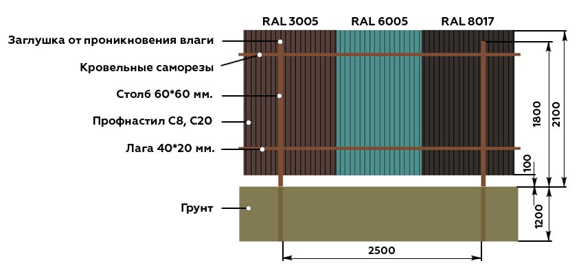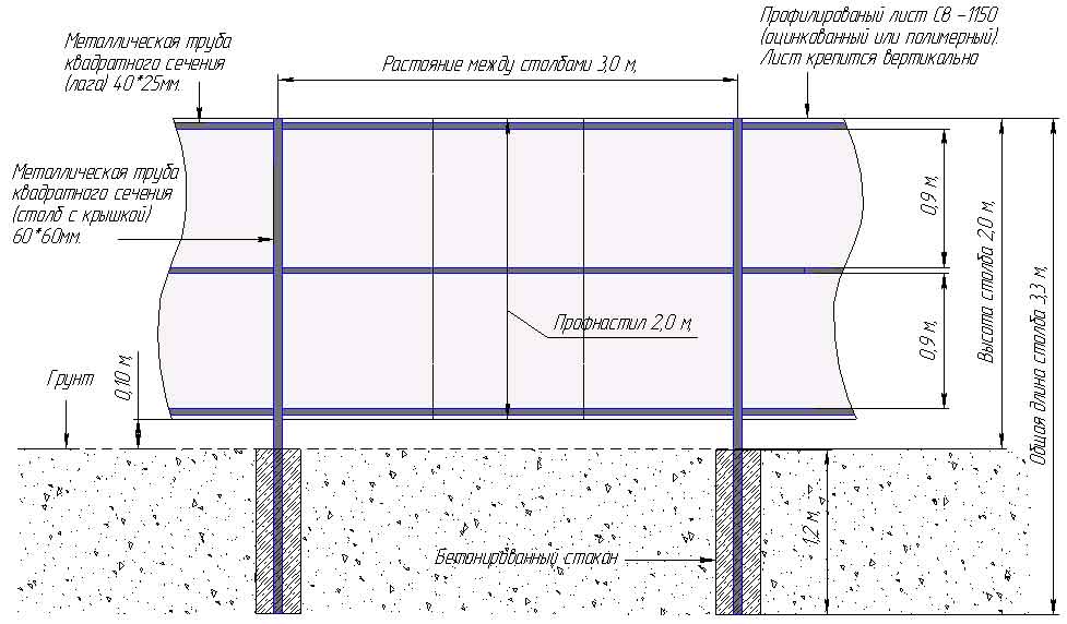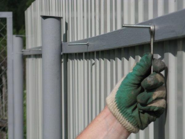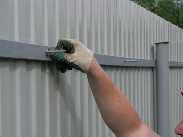El papel de los miembros transversales se realiza con mayor frecuencia mediante tubos de metal huecos con una sección transversal rectangular.El uso de troncos de madera es inaceptable debido al deterioro de la calidad de la madera en los lugares de fijación del perfil y acortando la vida útil. Además, el uso secundario de tablones de madera es posible solo en casos raros. Solo se justifica el uso de tiras de metal de 40 × 20 o 40 × 40 mm de tamaño con paredes de 2 mm. El área transversal del registro debe combinarse con el mismo indicador para los postes de soporte, en proporción directa a. Las esquinas metálicas no serán necesarias para usar con rezagos. Su grosor (2 mm) es poco adecuado para la resistencia a la fuerza del viento, y no se utilizan opciones de más de 2 mm para este tipo de cercado. Las paredes del rezago, así como las láminas en sí, se seleccionan con un grosor de hasta 2.5 mm, porque es difícil ingresar hardware especial en superficies gruesas.
