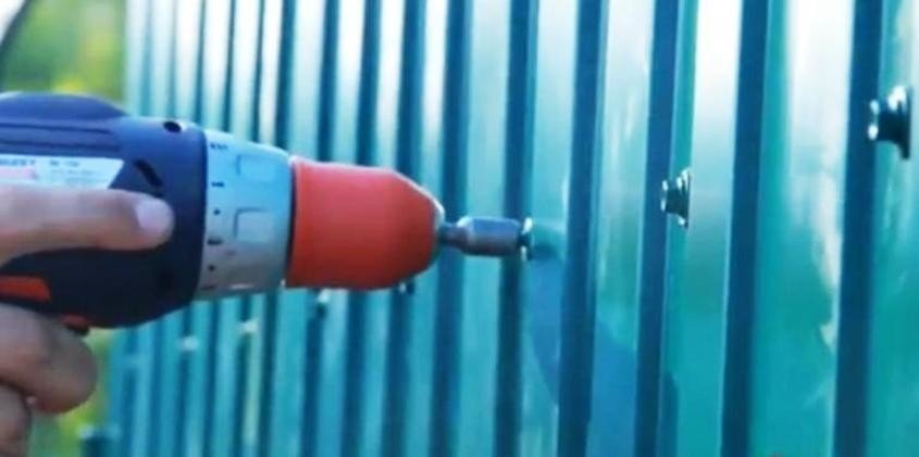 La instalación comienza con un estudio de la configuración del material. Una de las dos ondas en los bordes de la lámina actúa como una cubierta, y puede ser derecha o izquierda. Por lo tanto, el ensamblaje correcto de los dos primeros segmentos es importante. La conexión de las láminas entre sí se realiza mediante tornillos autorroscantes de una forma especial o remaches. El montaje en un marco o soportes comienza desde la puerta y se mueve en direcciones opuestas, ya que no se recomienda colocar elementos recortados en la entrada. El espacio libre entre el borde inferior de la lámina corrugada y el suelo se deja a 5 cm, para ventilación. El montaje se organiza a lo largo de los bordes de cada registro horizontal y en el medio de la hoja. También hay reglas para usar hardware. En primer lugar, la fijación al retraso se realiza en los huecos del perfil, y las hojas se conectan en la parte sobresaliente. Las piezas no deben apretarse, de lo contrario se dañará el sellador. La apariencia de la parte frontal del perfil se dañará si se suelta el tornillo autorroscante.