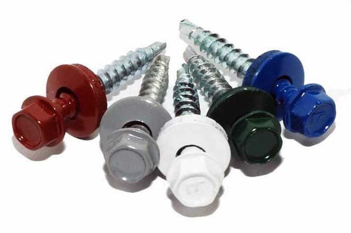 Las columnas de soporte están cerradas con tapones. Debe comprar la cantidad correcta y algunas piezas en reserva. Para el trabajo, necesita placas de soporte. Conectan bastidores de soporte y registros. En consecuencia, la necesidad de estos detalles puede establecerse multiplicando el número de columnas por el número de registros transversales. Los tornillos autorroscantes (un tipo de hardware) se unen a las corrugaciones extremas y a través de uno o dos en el centro, en cada retraso. En una hoja de perfil, 6-12 tornillos generalmente "van". El número total de estos sujetadores se redondea a un múltiplo de 250 (1 paquete), en la dirección del aumento. Otra opción de montaje, los remaches, se considera menos conveniente. El número de placas finales decorativas se calcula dividiendo el perímetro de la cerca por la longitud de trabajo de la tira. Es igual a 185-195 cm, teniendo en cuenta la superposición, con el valor habitual de 200 cm. La cantidad de pintura para la cerca se elige en función de su longitud y área.