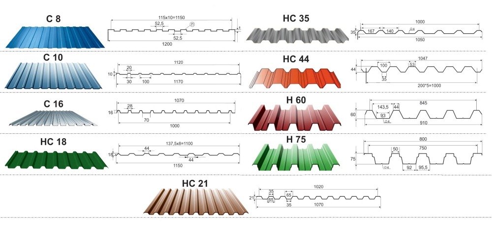Instalación de la hoja perfilada y las reglas para su fijación.