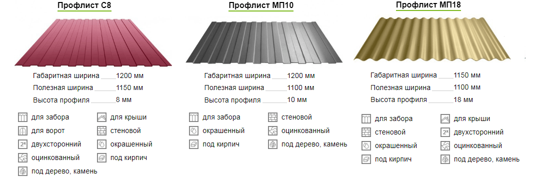 Para la construcción de cercas, los fabricantes han proporcionado varias variedades de cartón corrugado. Los tipos principales son pared (C), rodamiento (H) y universal (NS), que incluye las características de los dos primeros. La cerca debe ensamblarse desde C o desde la Asamblea Nacional. La guía principal para la selección son las características proporcionadas por un fabricante en particular. Como la mejor opción es la pared, lo único que le queda a una persona para elegir es la altura de la corrugación. Se indica después de la letra de tipo. Un perfil de metal con olas de 8 mm de altura está marcado como C8, y esta no es la mejor opción para cercas, especialmente las altas. La hoja C10 ya es mucho más fuerte. La opción con elevadores de 14 mm está montada en rieles del marco. Las cercas altas de cualquier configuración en condiciones climáticas difíciles están hechas de variedades de 18, 20 y 21 mm. C15 con una costilla ancha de corrugación es un material universal, pero se utiliza para otros fines.