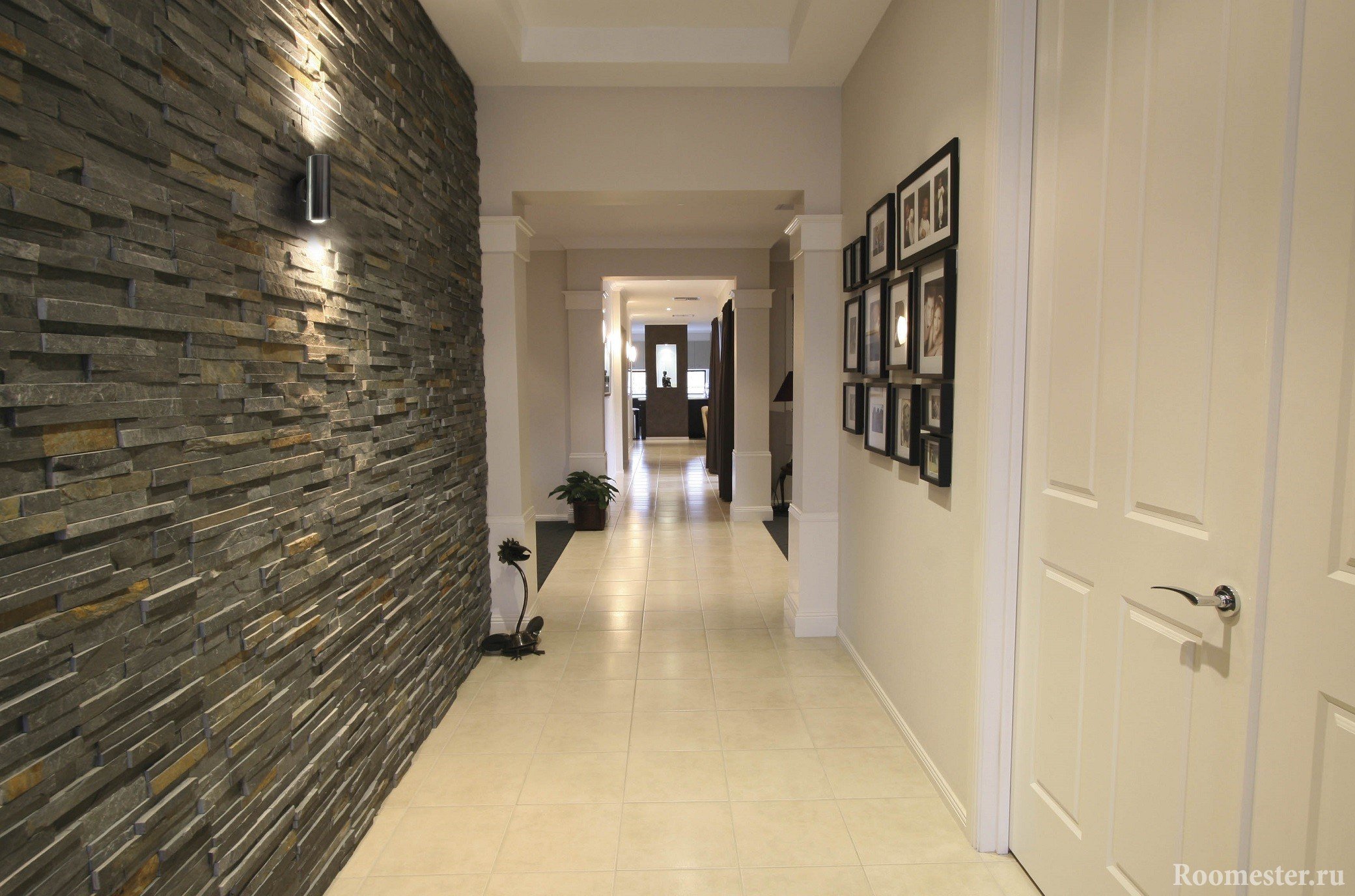 Korištenje kamena za ukrašavanje pojedinih dijelova sobe pomoći će daljnjem pročišćavanju unutrašnjosti uskog hodnika u stanu.