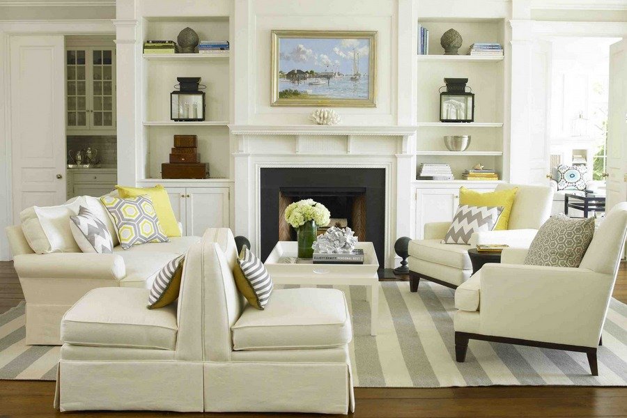 pijesak - prljavo žute nijanse, koji često služi kao izraziti akcenti. Ulomak zida, tepiha, tapeciranog namještaja može se obojiti u ovoj boji;
